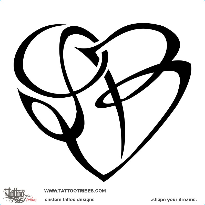 This heart tattoo is shaped by the union of the letters L + B and it symbolizes unity between the two people represented by the initials.