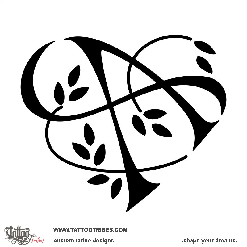 This heart tattoo prepared for Ariadna is shaped by the letter A, the initial of her child, and it is decorated by myrtle branches symbolizing faithful love.