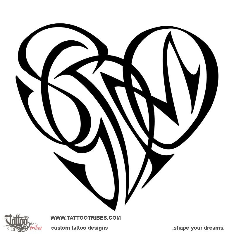 Heart shaped by letters, or heartigrams as we call them at TattooTribes, represent the bond of love shared by the people symbolizes by the letters.