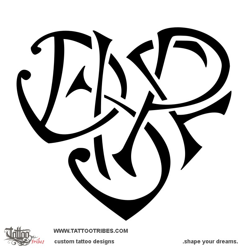 This heart tattoo shaped by the letters D+J+I+P+F was requested by Davey.