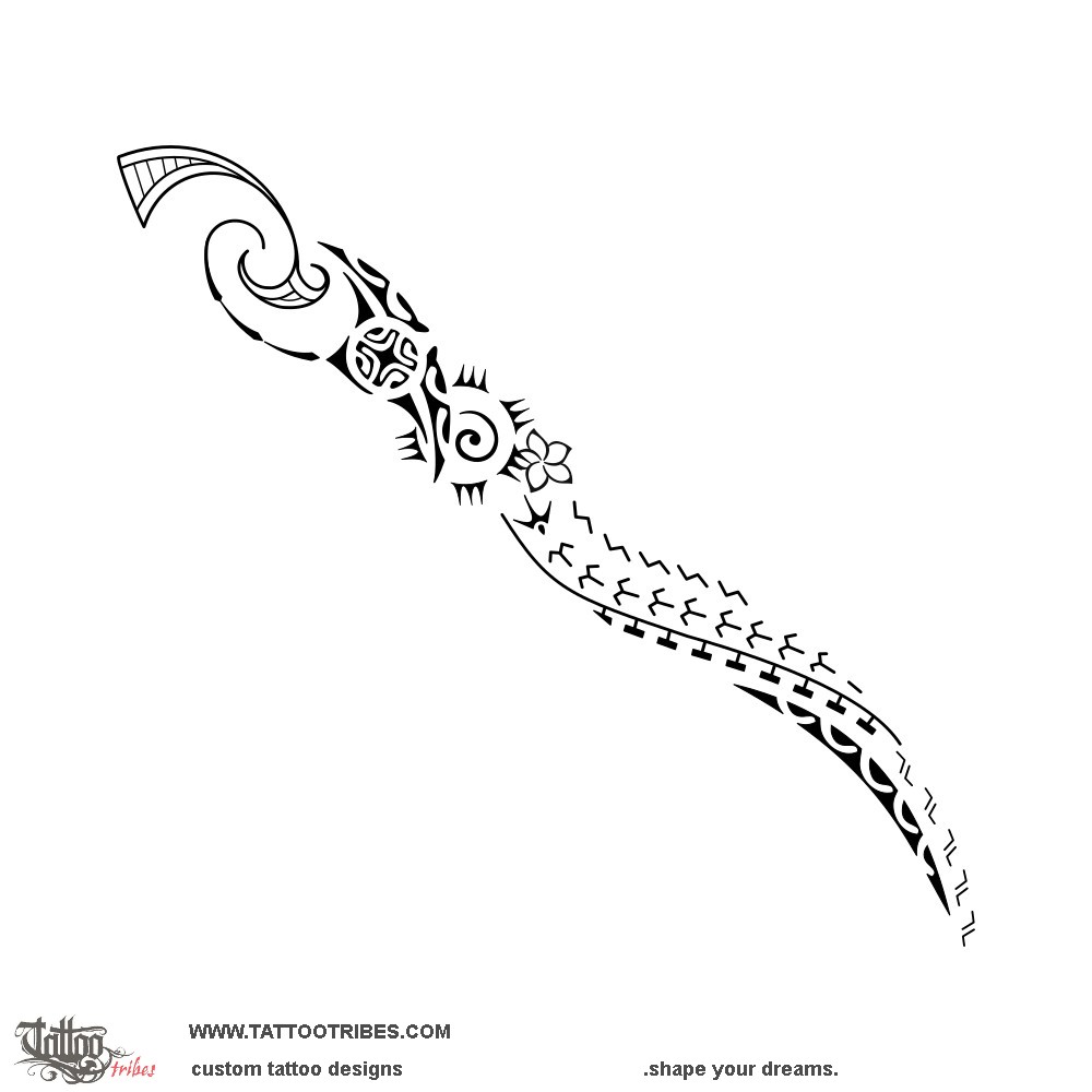 This feminine Polynesian tattoo spiraling along the arm was designed for Mariachiara and it represents the voyage of her life (the row of birds), along the path of Kamehameha (a path full of challenges) that finally led to joy and freedom (the sun and the manta).
