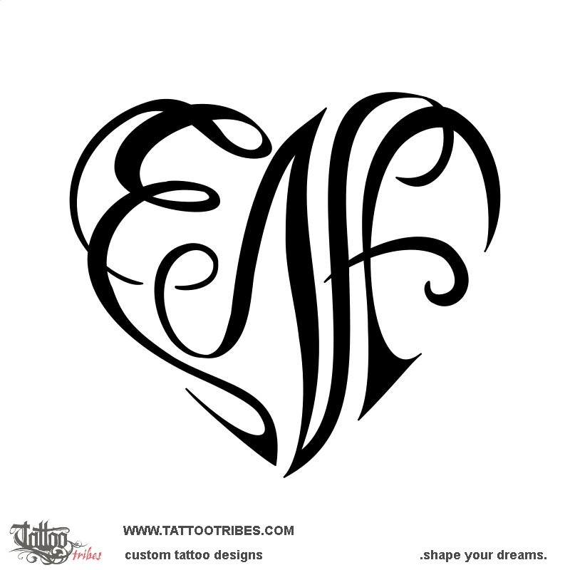This heart tattoo shaped by the letters E+N+F was designed for Nathalie and it represents the bond and love that she shares with her daughters.