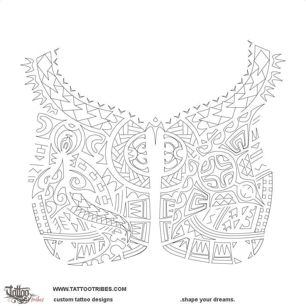 This Polynesian tattoo covering both pecs was prepared for Sergio as part of a bigger project covering also the full back and both arms, integrating some existing tattoos.