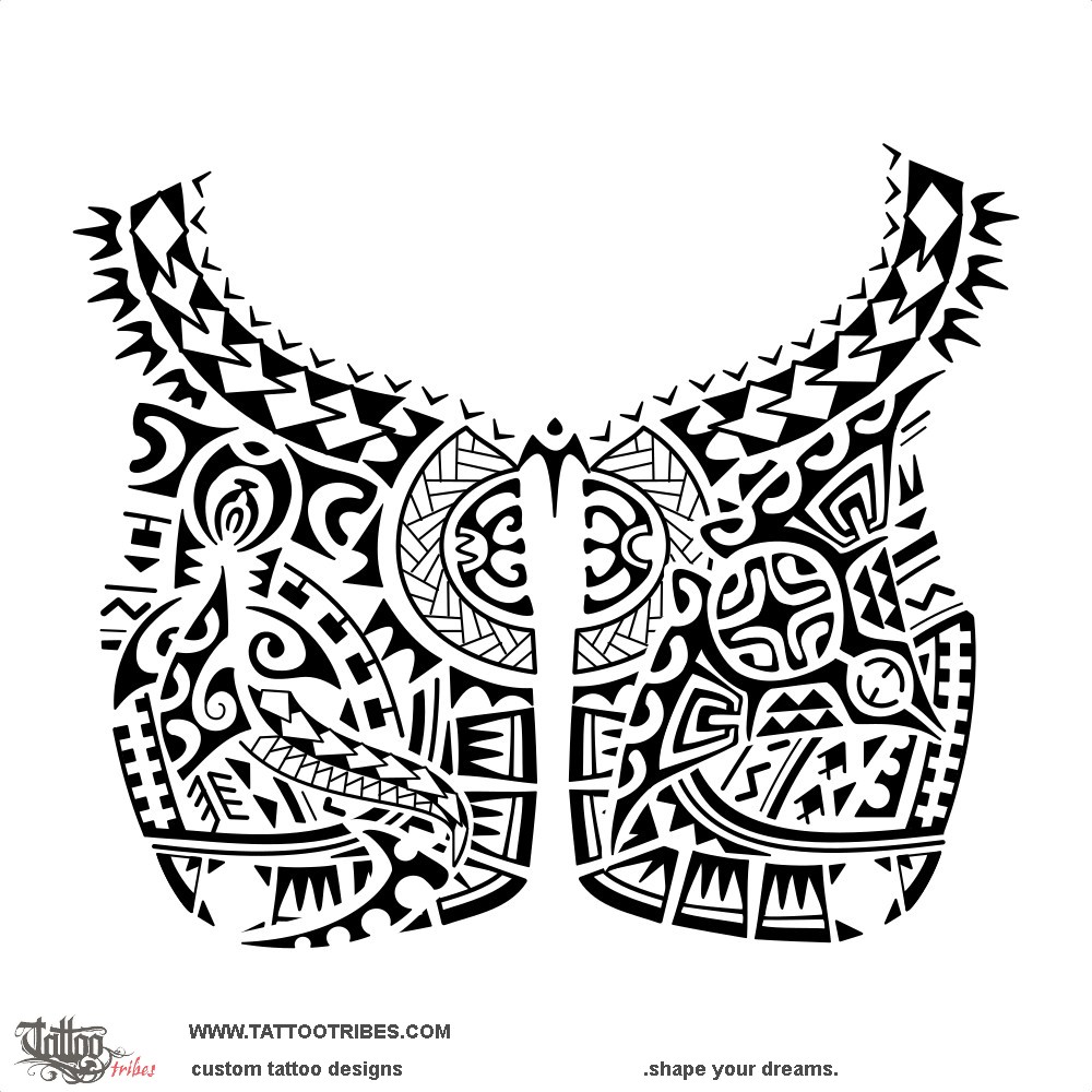 Polynesian tattoo for both pectorals