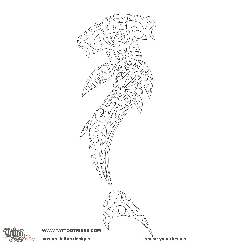 This Polynesian hammerhead shark tattoo was prepared for Ed and it symbolizes strength and tenacity.