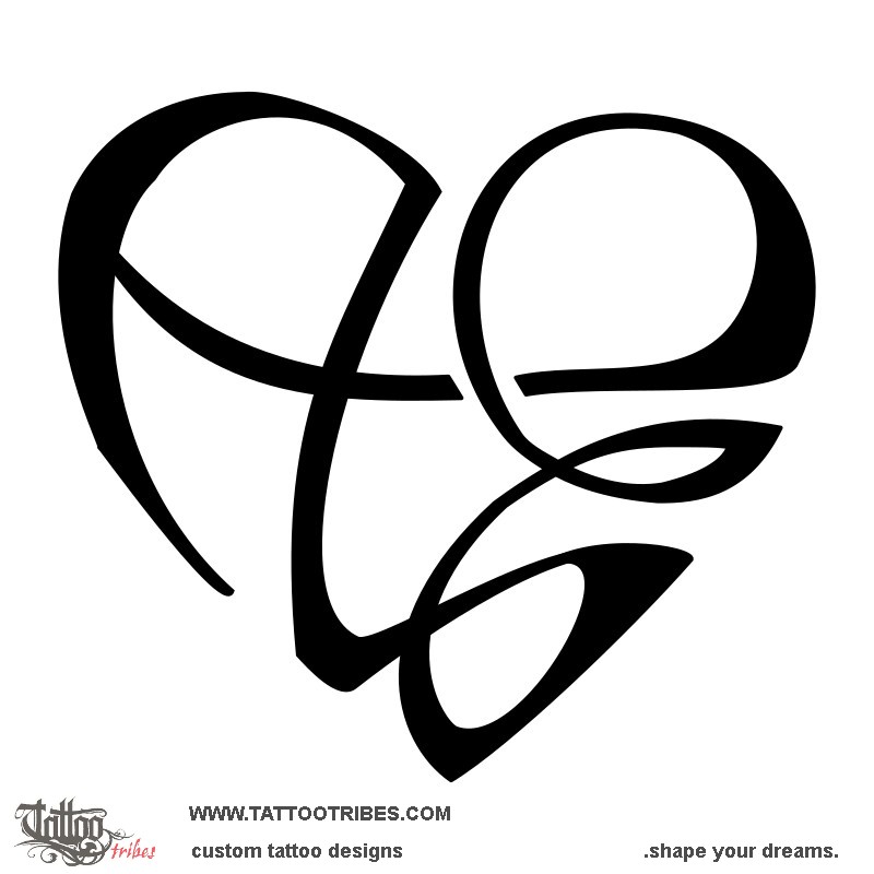 This heart tattoo is shaped by the initials A+E and it was designed for Amira to include her letters in a heart as a logo symbolizing passion.