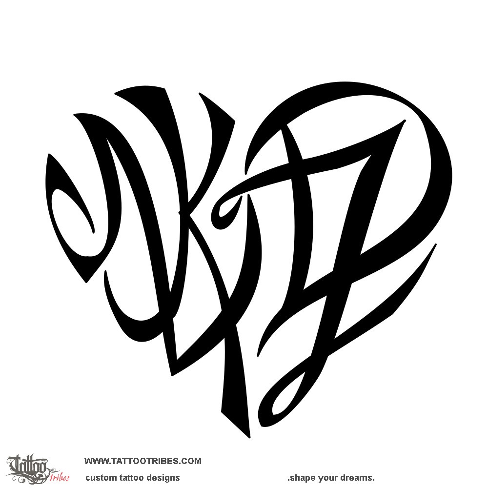 Heart tattoos shaped by letters (or heartigrams as we call them) are used to represent the bond of love shared by the people represented by the initials, or for them.