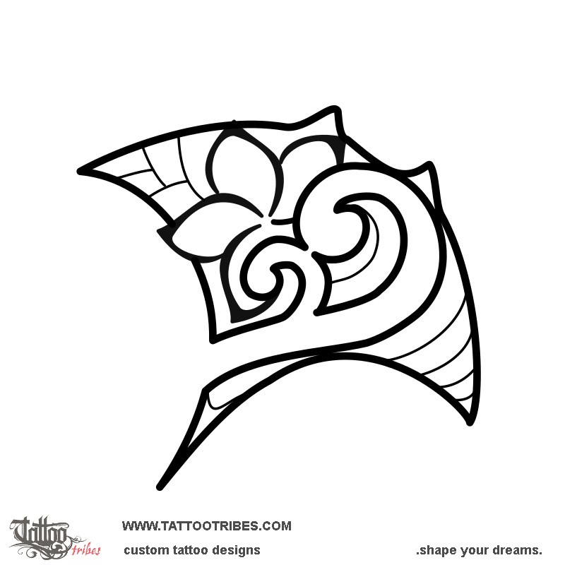 The manta symbolizes beauty and freedom and it includes a double koru representing parent/child, and we added a frangipani for femininity.
