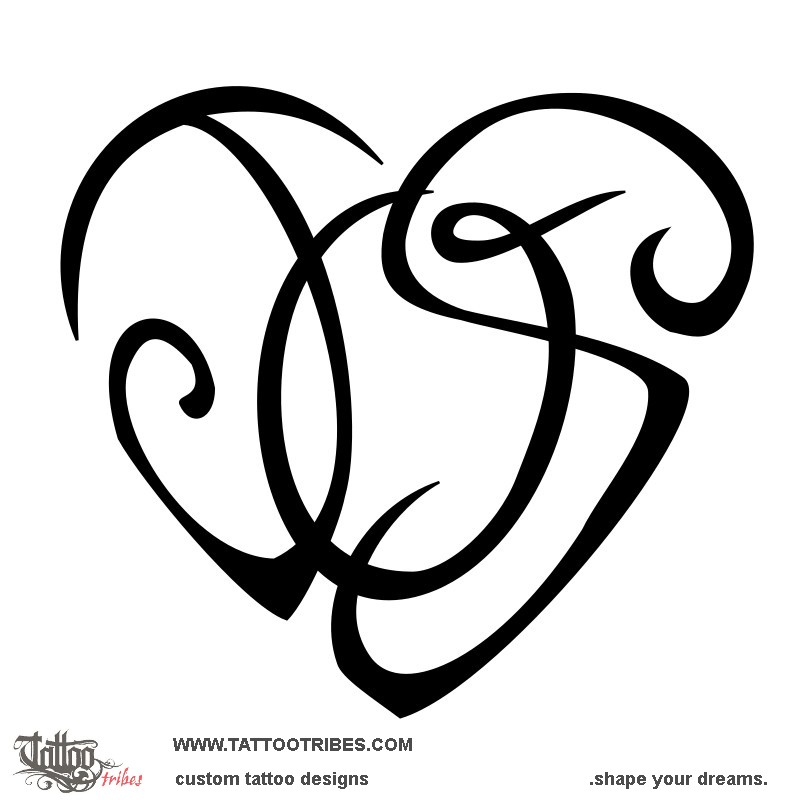 Heart tattoos shaped by letters symbolize love, a bond shared with the people whose initials are included.