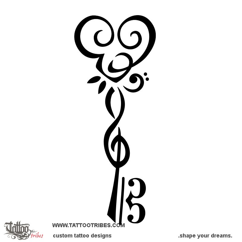 The other symbols that create the key are all related to music: treble clef, bass clef, and tenor clef.