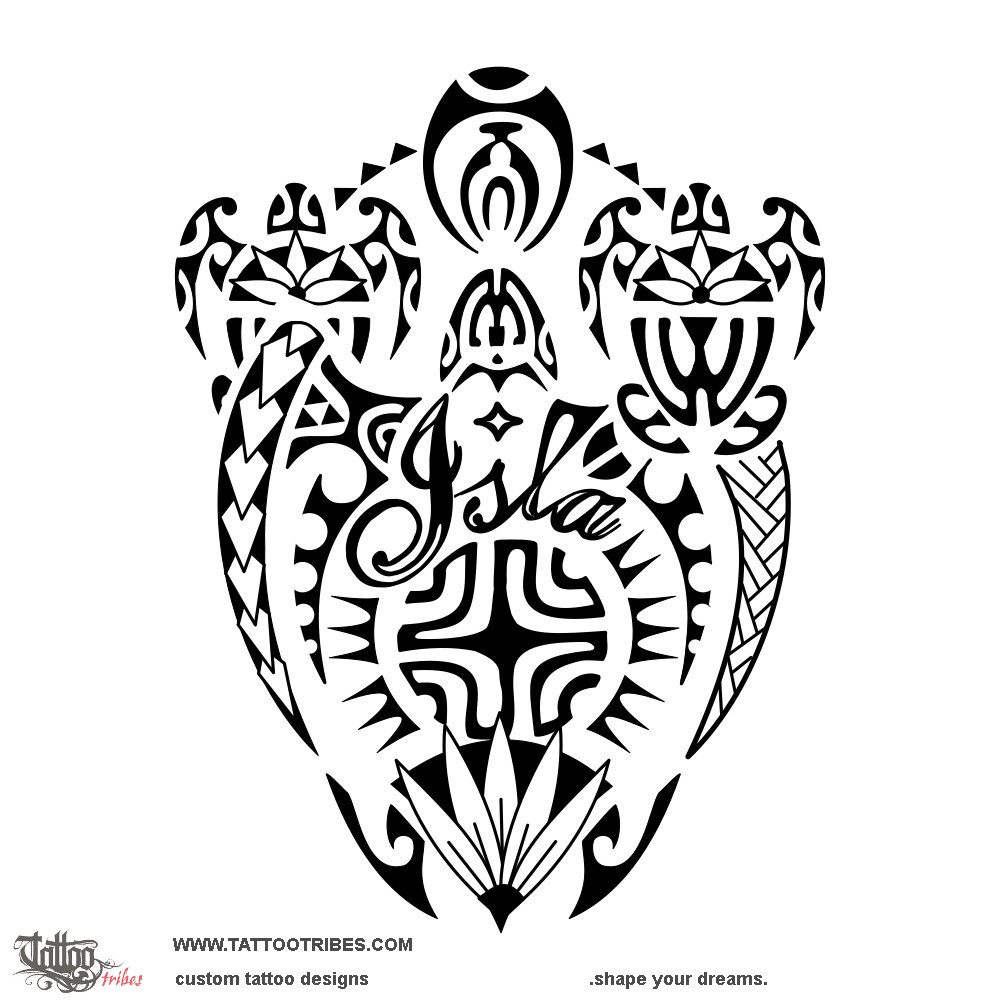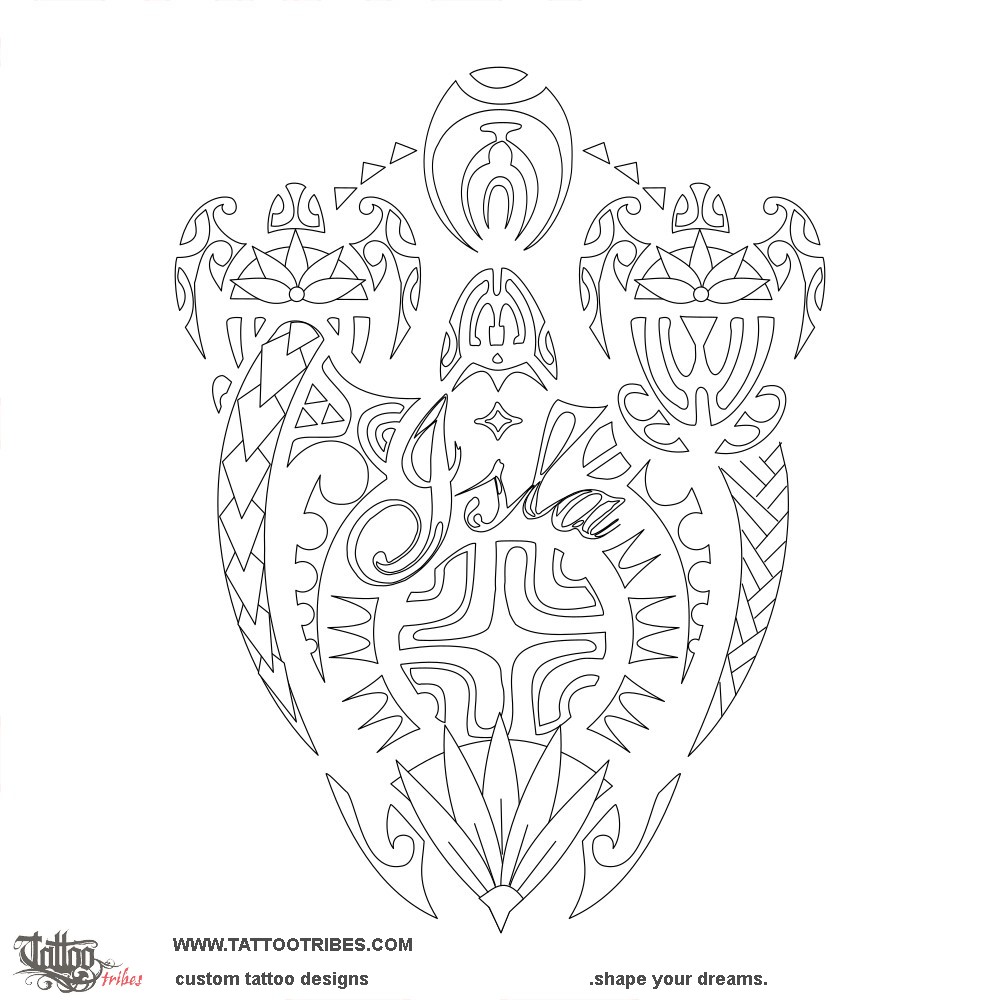 The turtle representing her is the main element, protected by the all-seeing eye and by the two smaller turtles representing her mom and auntie.