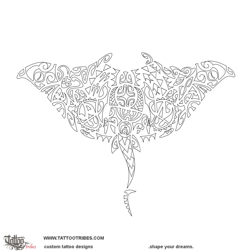 This Polynesian tattoo of a manta was designed to fit the upper back and it was prepared for Thomas who requested the composing elements to be disguised within the general shape.