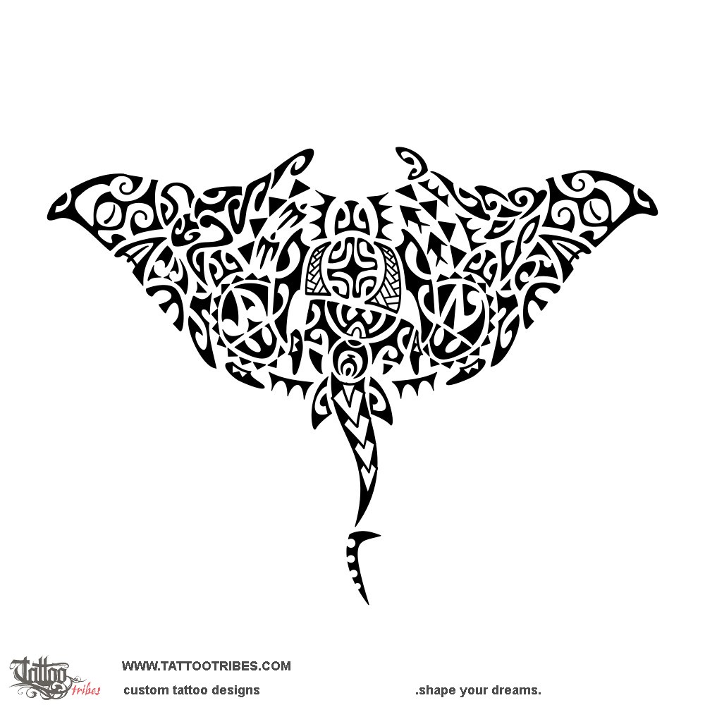 A hammerhead shark shapes the tail of the manta with an enata in it to symbolize the protector, supporting family with tenacity.