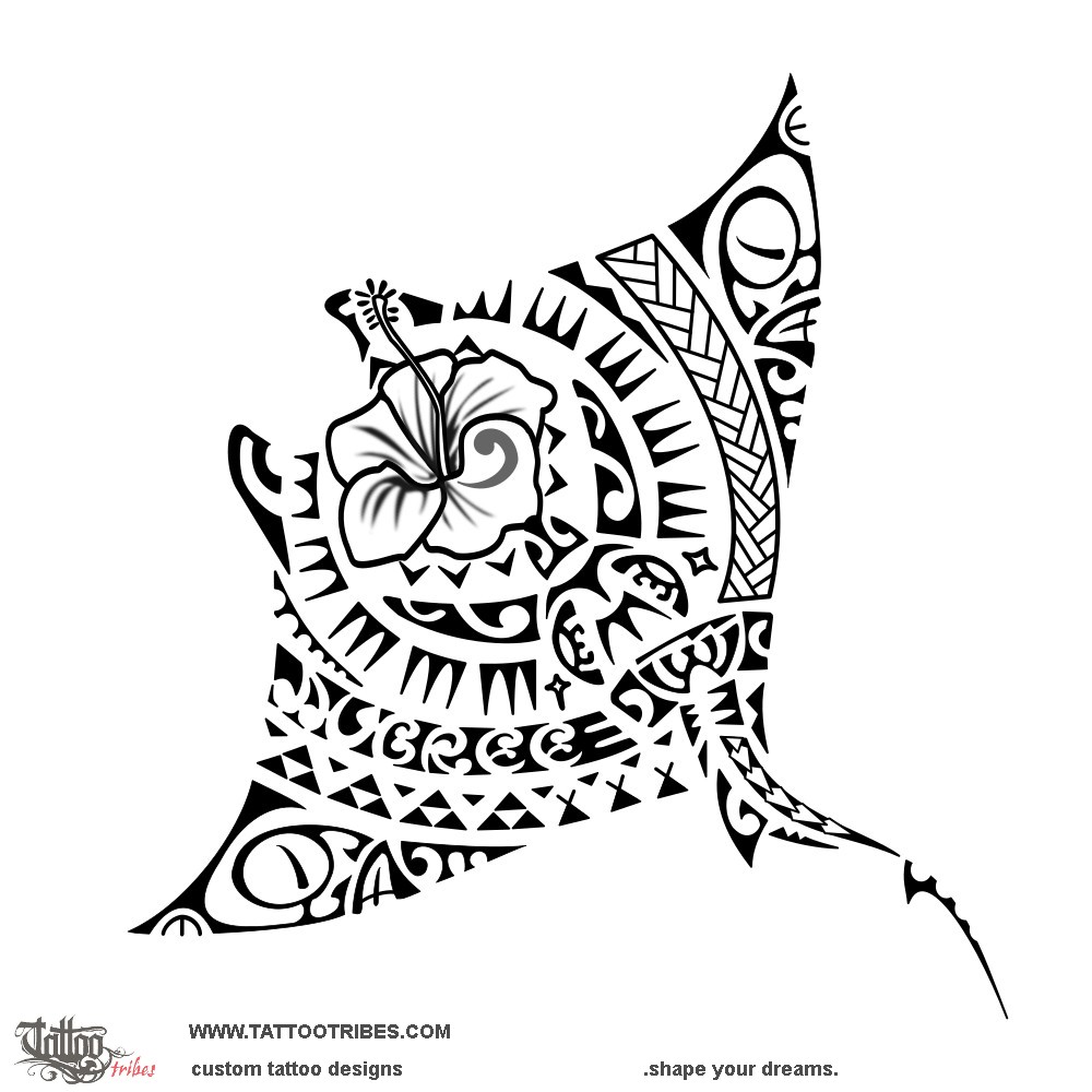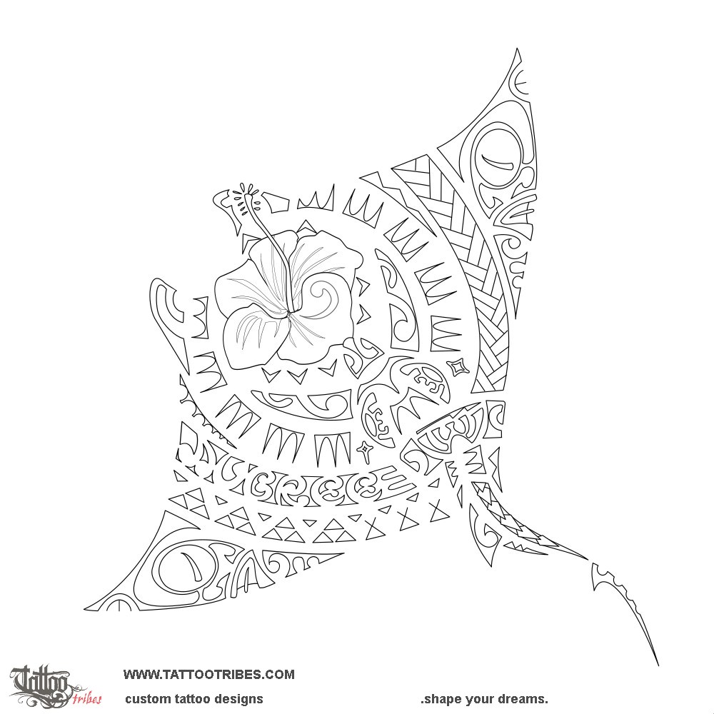 This Polynesian manta tattoo with Hawaiian elements was requested by Clint to represent his daughter Aubree.