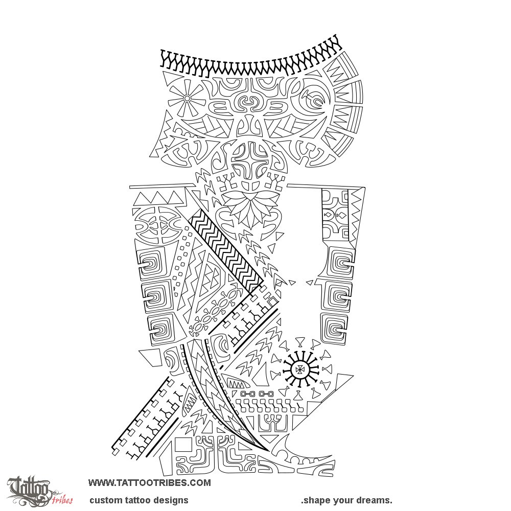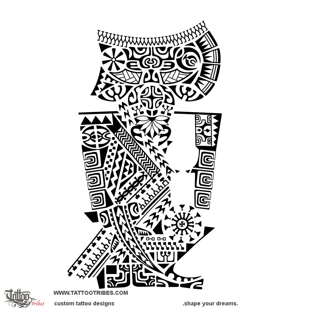 Since the style of the existing tattoo was quite bold, we chose a mainly Marquesan style approach to balance it, integrating it with Tahitian elements.