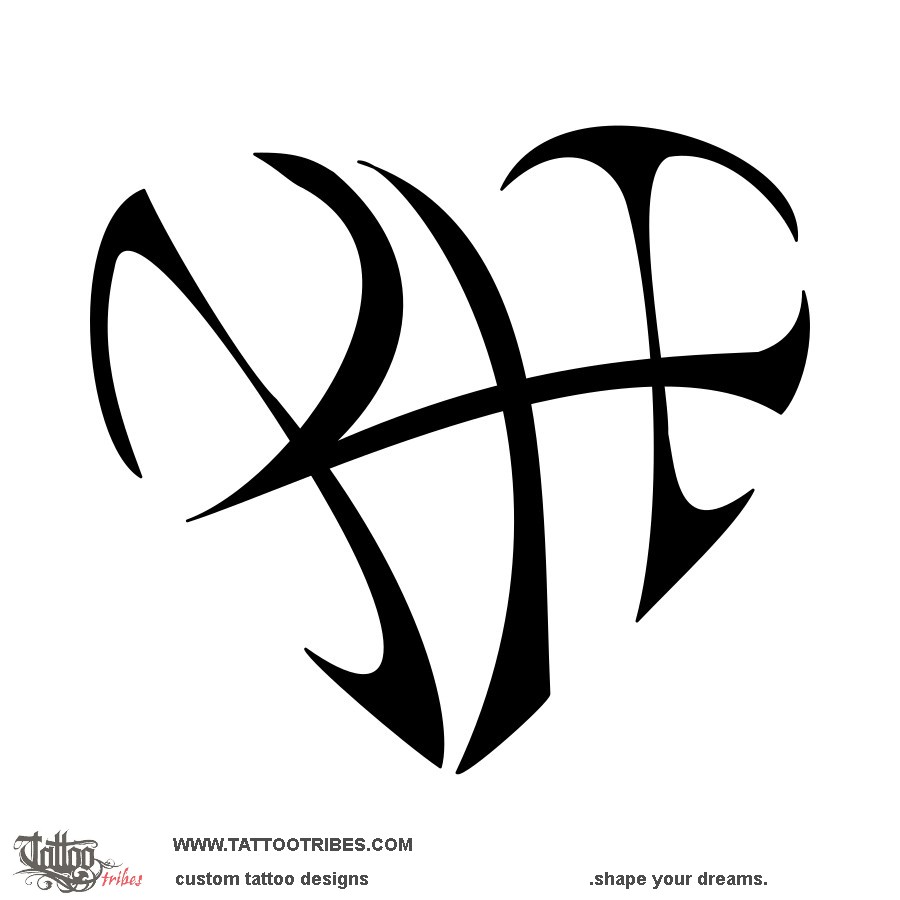 This small tribal tattoo of a heart is shaped by the union of the letters K+H, to represent a bond shared by two people.