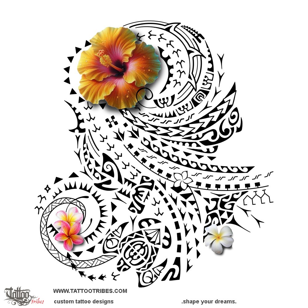 Polynesian tattoos explainedThis feminine Polynesian half sleeve tattoo was designed for Heike and it includes some realistic flowers to reflect her passion for them.