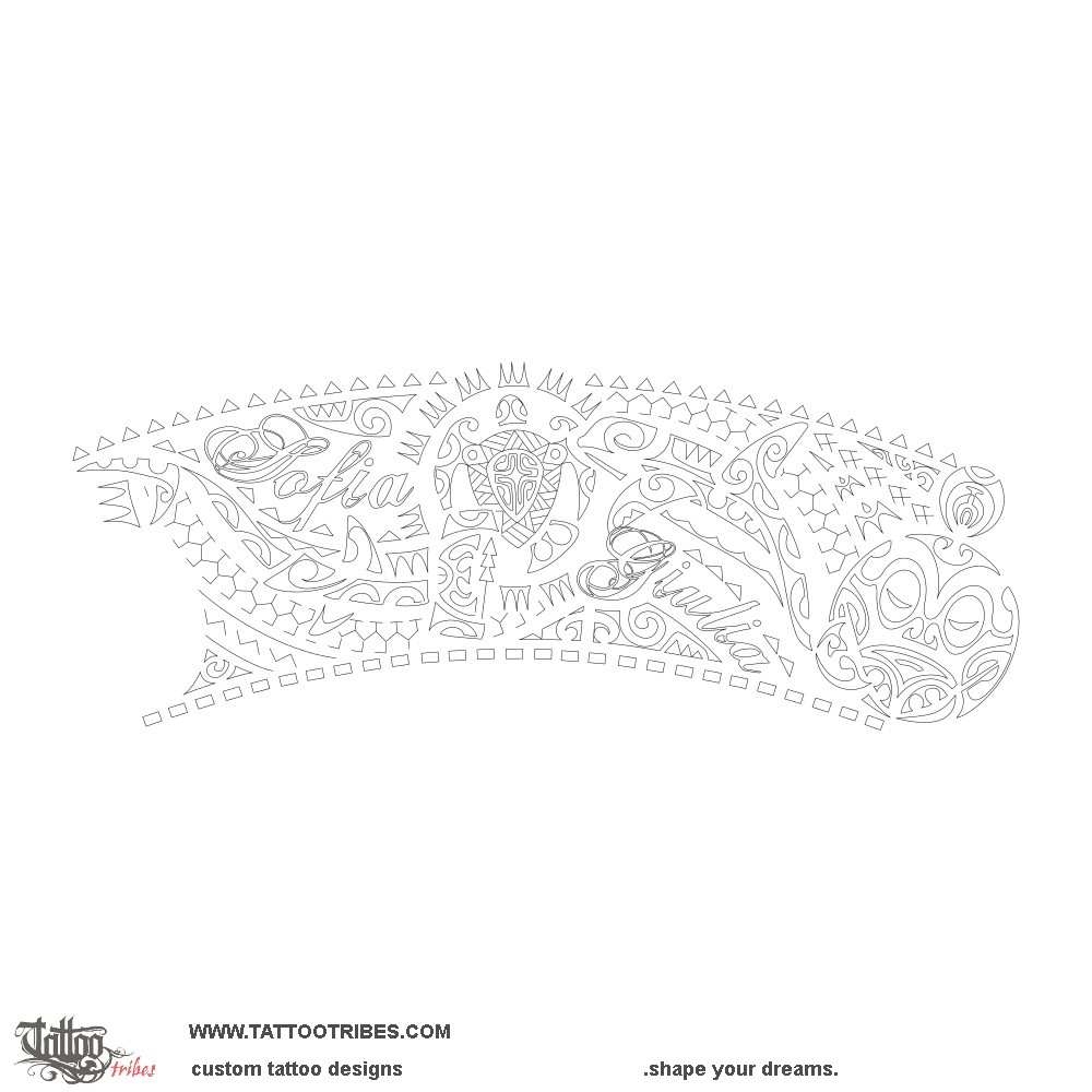 This mixed Polynesian style band tattoo was prepared for Marco and it includes the names of his daughters.