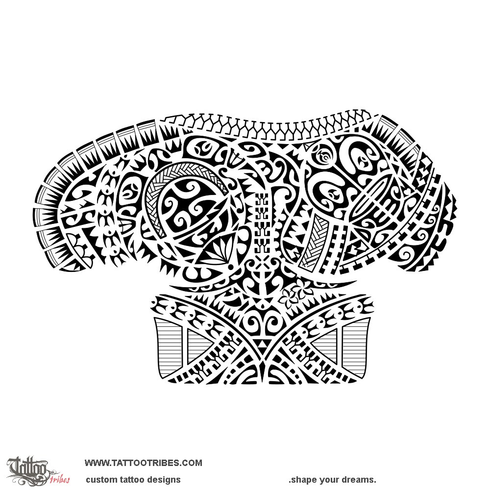 This Polynesian half sleeve tattoo extending onto pec and shoulder blade was prepared for Christopher to cover a small letters tattoo while representing his family.