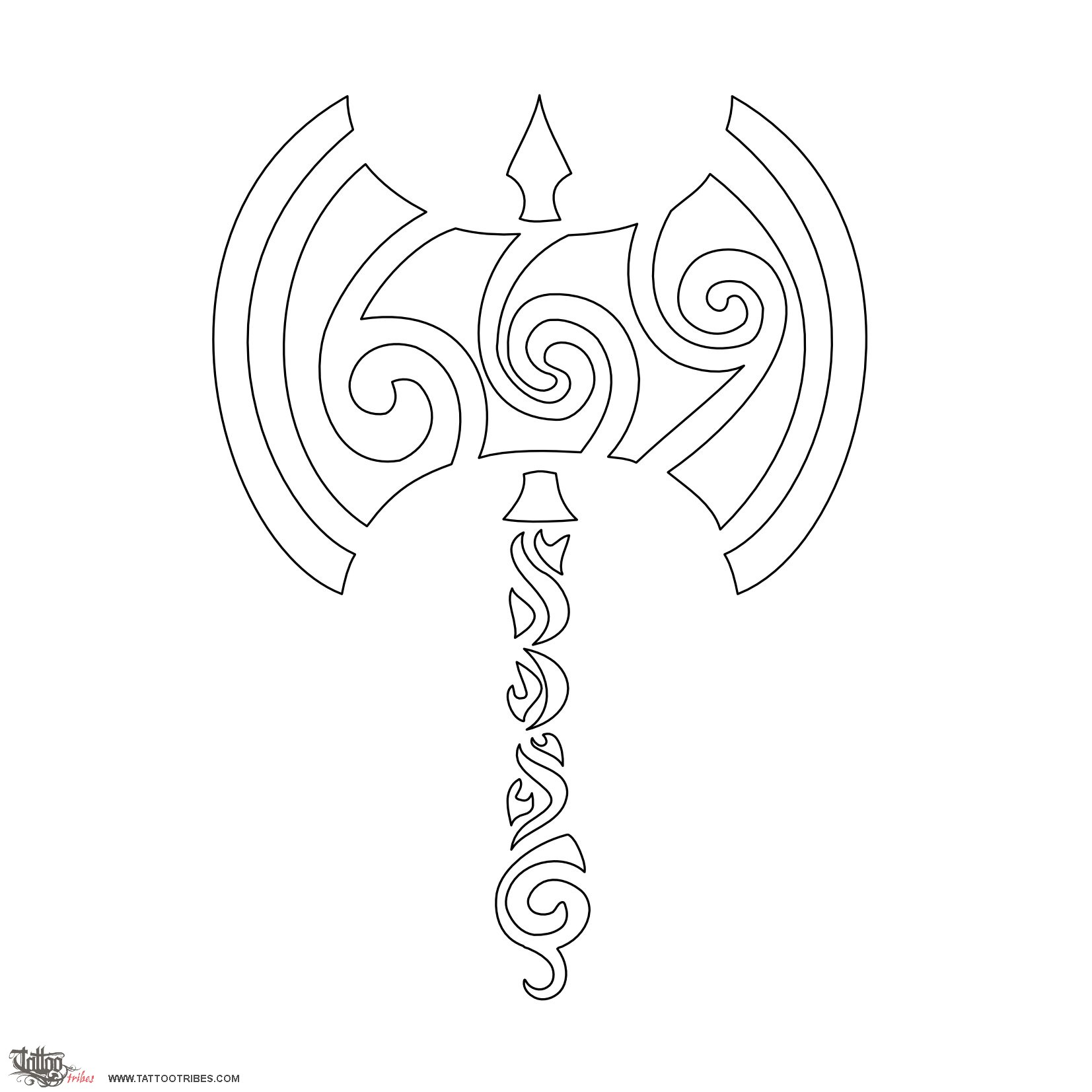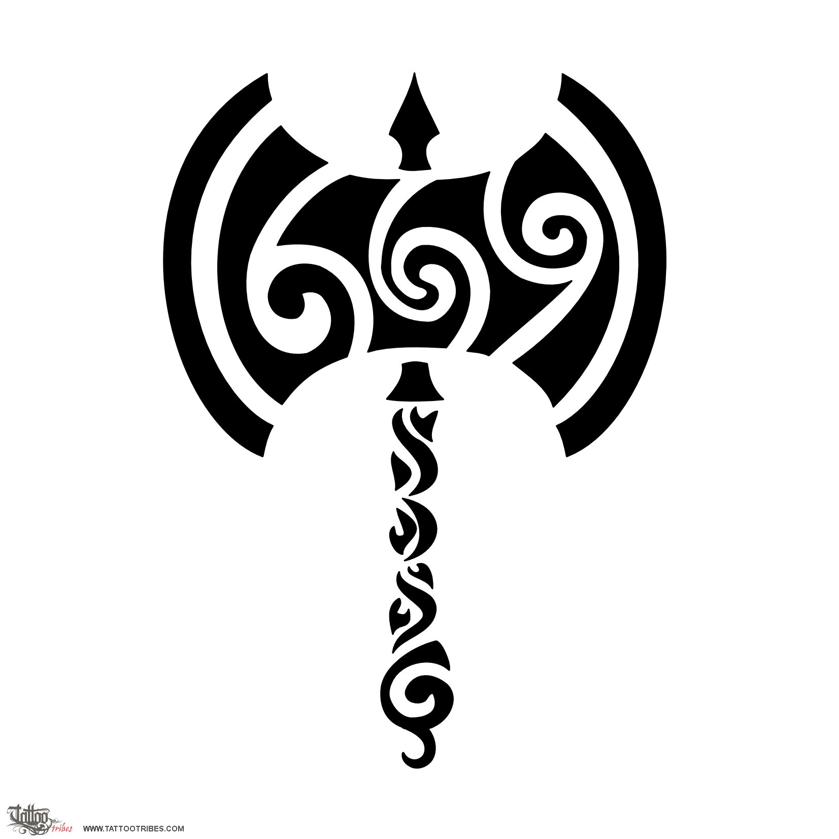 Axes symbolize the warrior and we thought of adding some elements derived from the traditions of Borneo to strengthen the meaning of courage and valiance, and the double tadpole spiral to remind that a real warrior does not destroy life, but preserves it.
