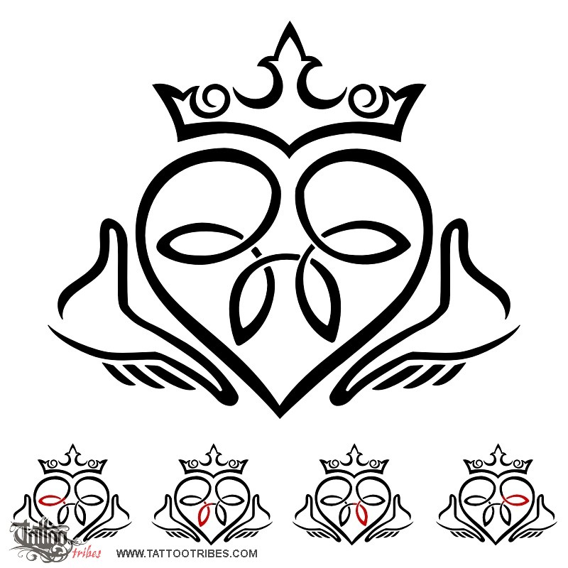 Polynesian tattoos explainedThe heart symbolizes love, hands are friendship and the crown means loyalty.