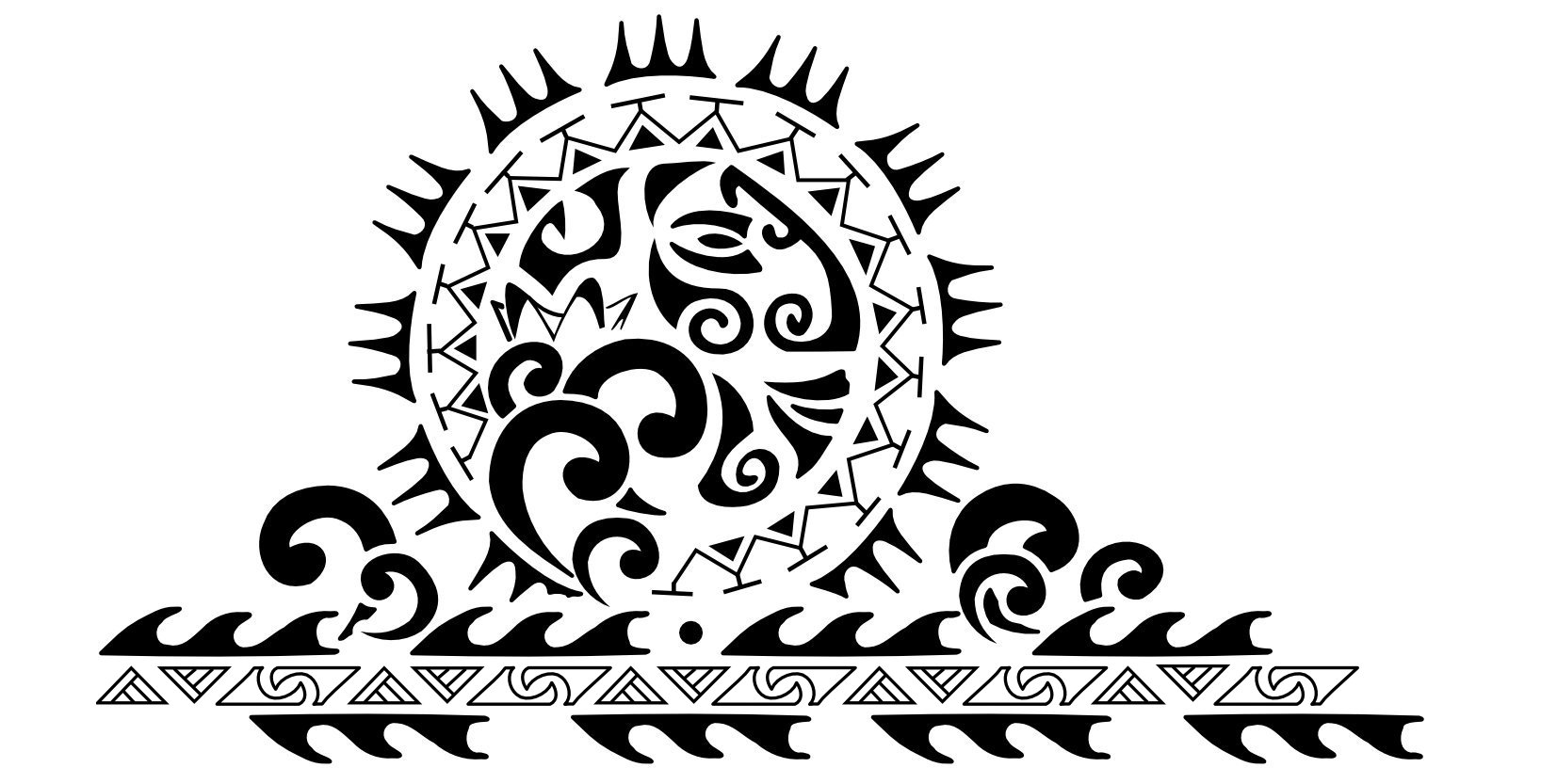 Other elements are the waves (water, continuity in change), the sun (eternity and joy), korus (new beginning) and the matau, or fish hook, which represents richness, wealth and protection at sea. The spot is one´s target, the ideal island to be reached.