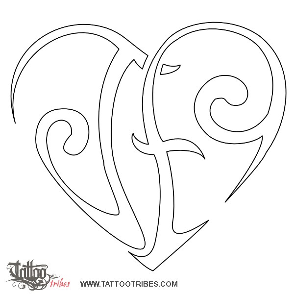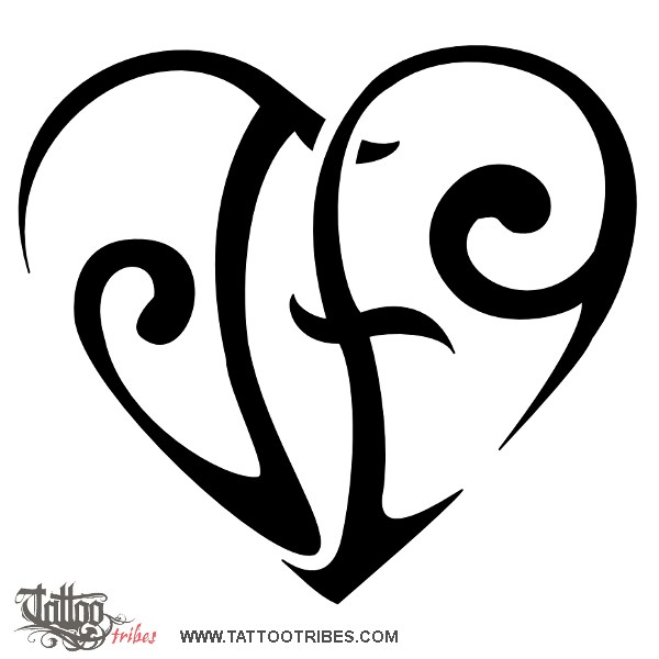 V+W heartigram tattoo photo