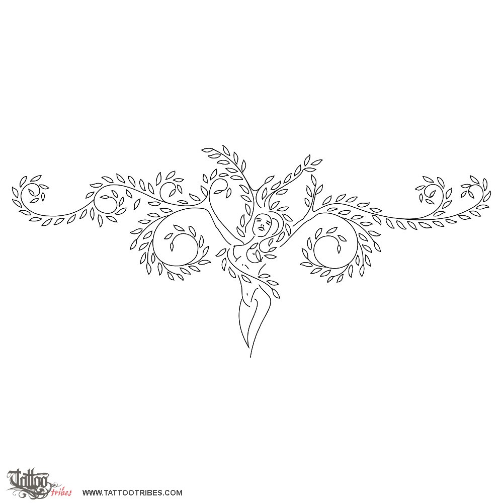 This design was requested by Kamila as a lower back tattoo representing a woman woven into the trunk of a tree.