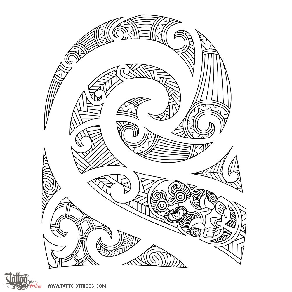 This design is inspired by the traditional Maori moko tattoos. Since moko tattoing used to decorate the face has a series of coded motifs used to tell a person´s story, and using them regardlessly would be irrespectful like stealing someone´s personality, an alternative style has been developed, similar in the way it looks but without specific meanings, called kirituhi.