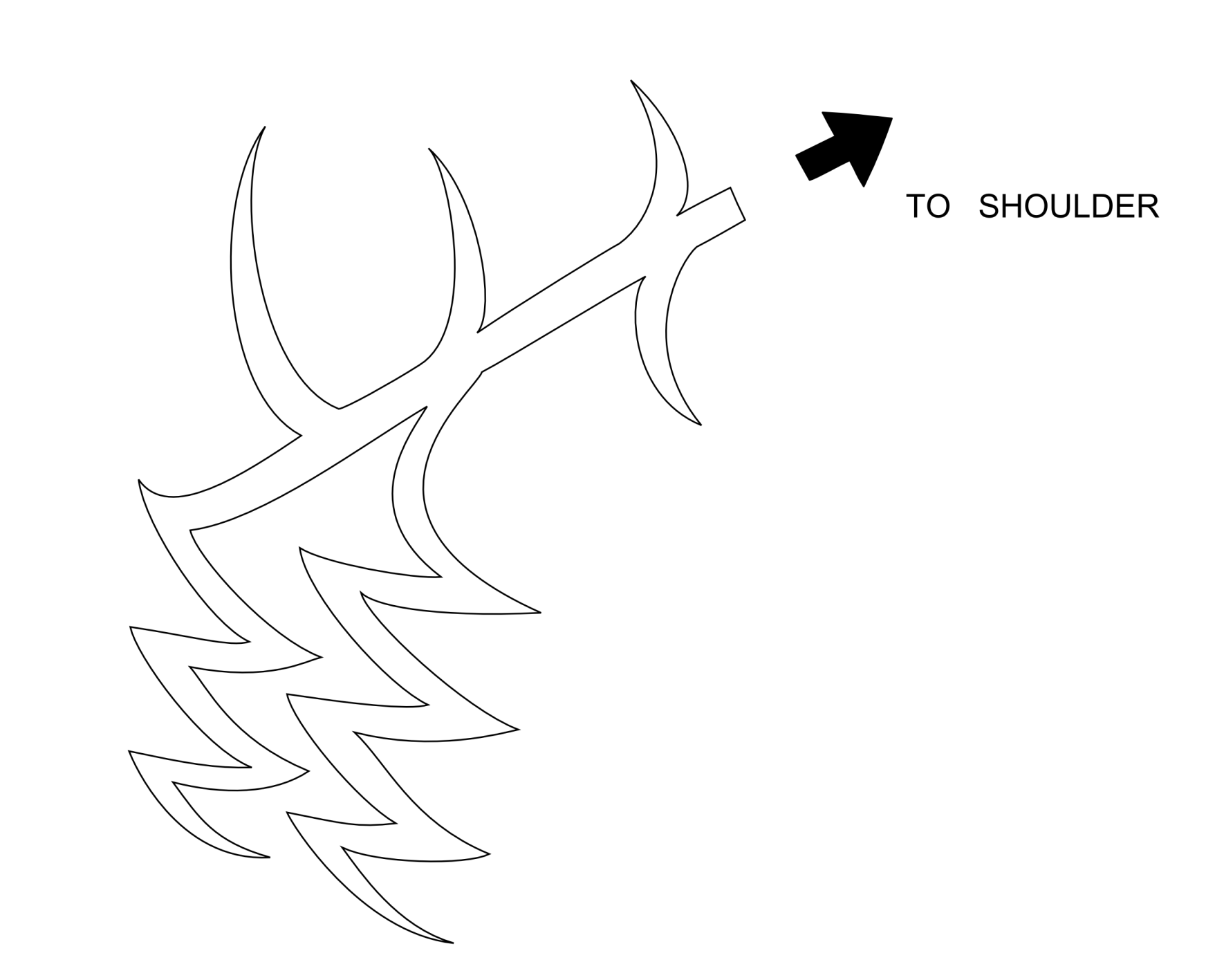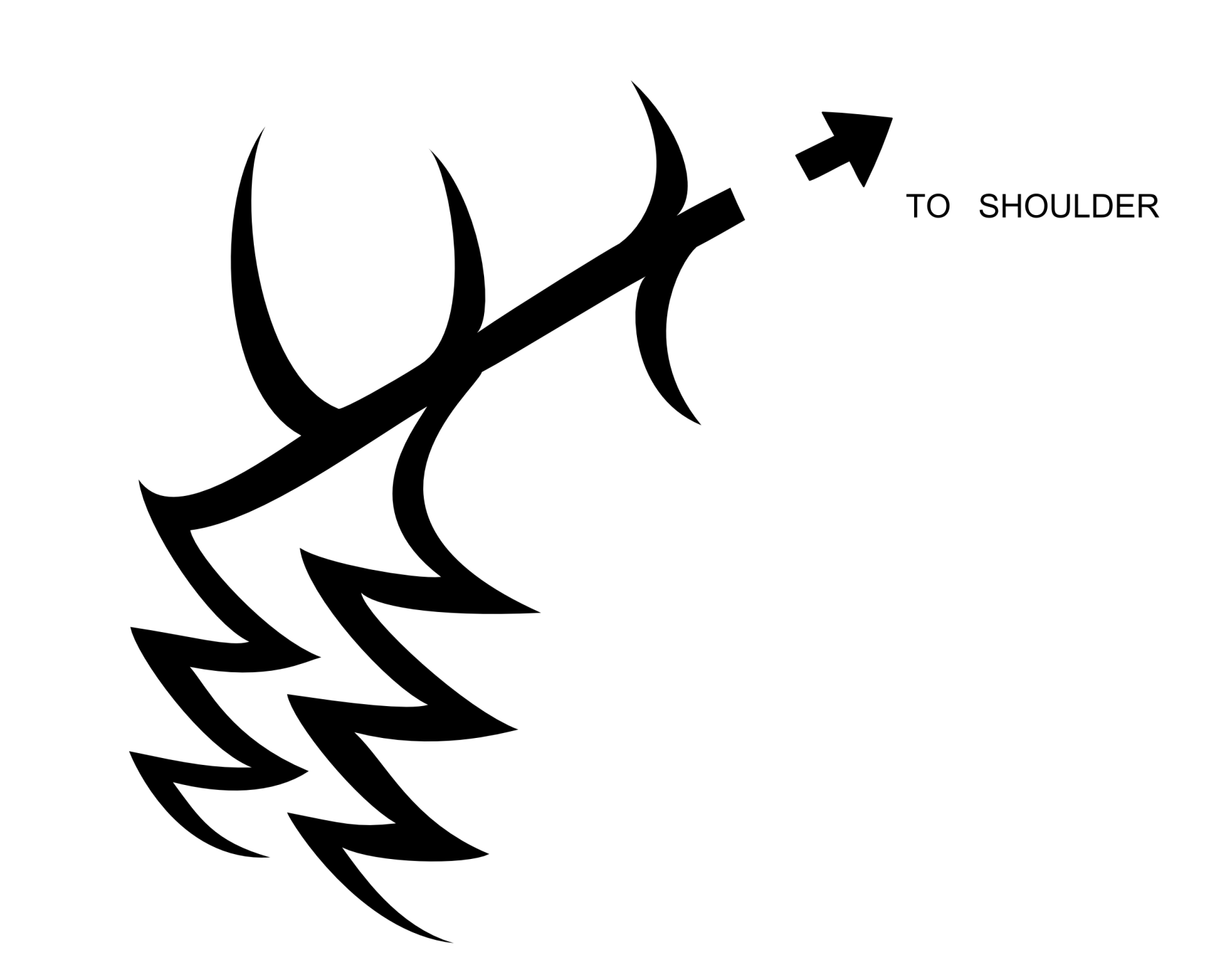 Image (3) is the shoulder pattern, which the tattooist shall join to the wrist pattern from image (4), according to the original design and along the lines of the arm; images (5) and (6) are the related stencils.