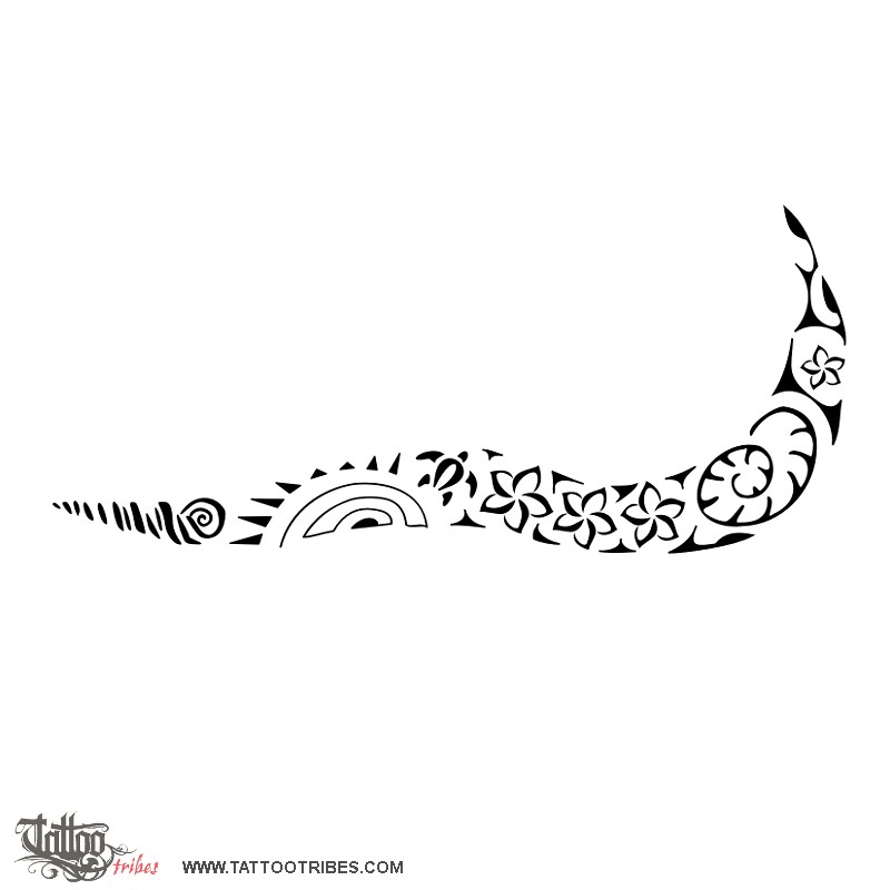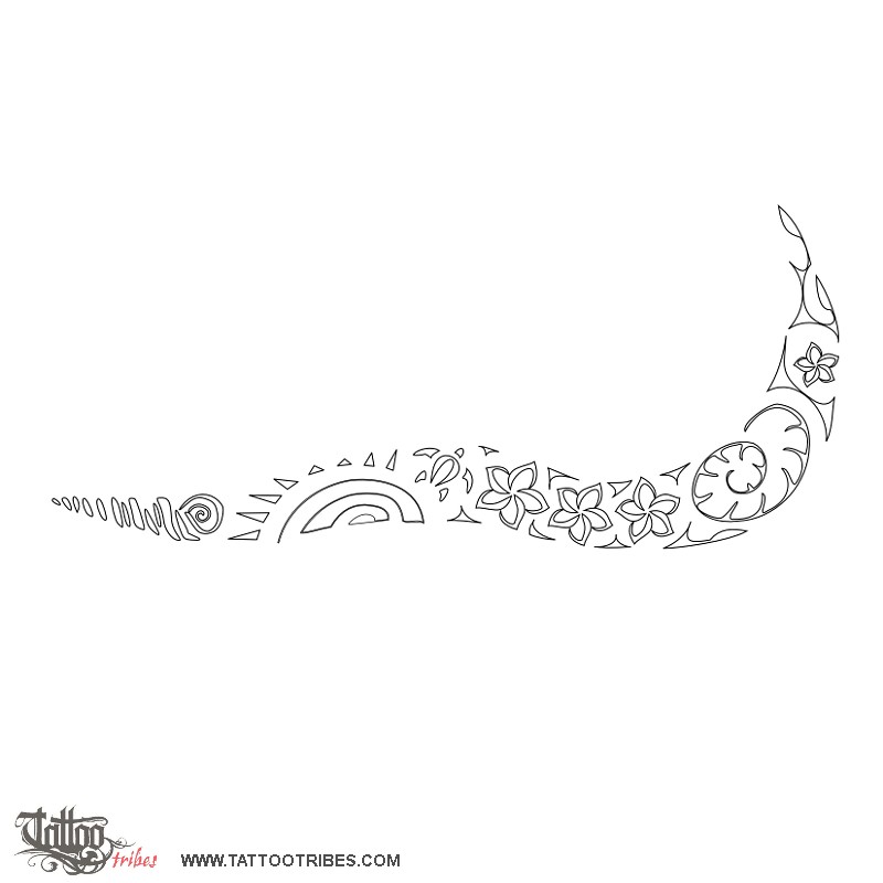 Polynesian tattoos explainedShells symbolize love and shelter, which are the basis of family, and the frangipani flower alone on top represents an unborn baby (waves symbolize change and are sometimes used to represent the world beyond). We placed it on top to symbolize how the baby is now free in Heaven.