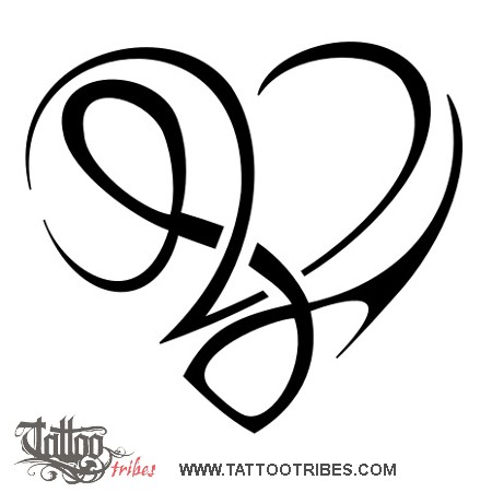 V+W heartigram tattoo photo