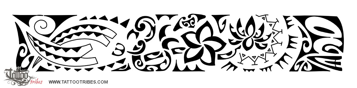 These changes for the better (proceeding waves) brought back beauty (frangipani flower) and freedom (manta) in her life (the sun surrounding the lotus flower, which symbolizes defeating every adversity to bloom over them, and perfection). The fish hook represents her renewed prosperity and the tiki guards her from her old enemies, now blocked by manaia and tiki not to harm her anymore.