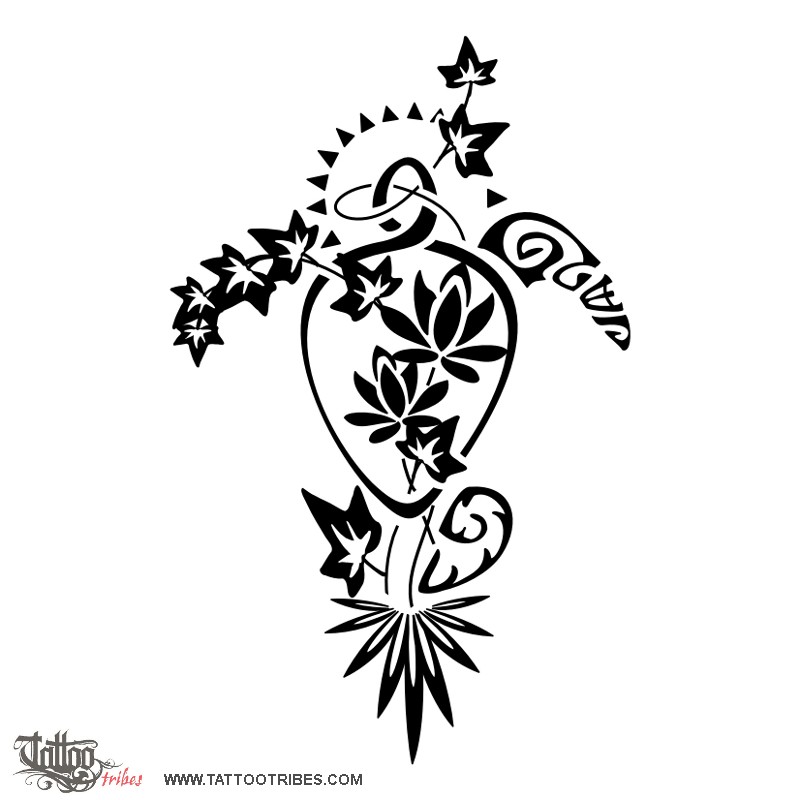 The left flippers are made of ivy leaves, embracing the turtle (ivy symbolizes fidelity, committment and tenacity).