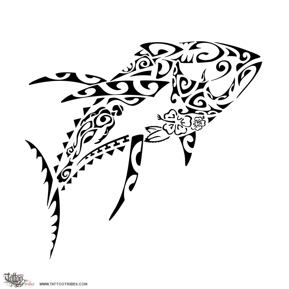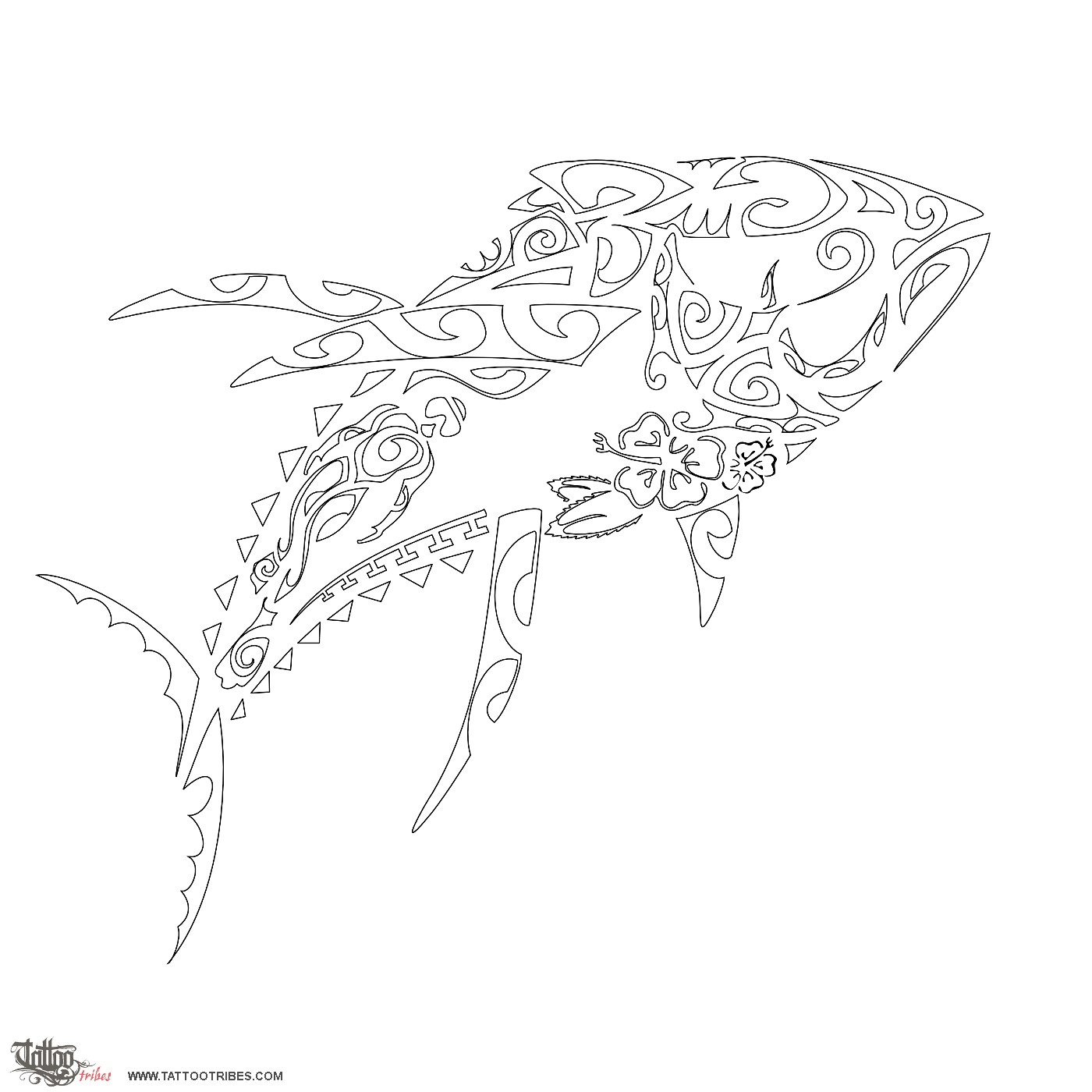 Polynesian tattoos explainedThe darker back is formed by a scuba diver in the tail and by a shark in the front, with the tail of the shark becoming the upper fin of the tuna. The manta marks the round shape of the head with the tail rounding up to become the eye of the tuna.
