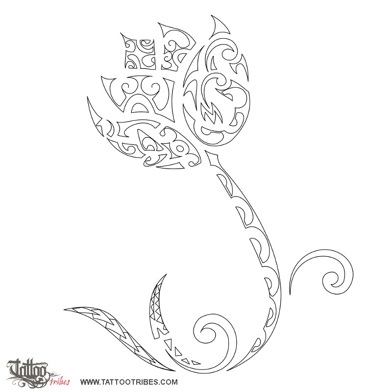 The central petals of the flower are made of two human figures that, together, hold the Marquesan cross (harmony and balance) as the focal point of the tattoo.