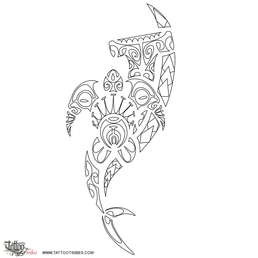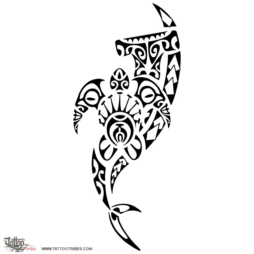 Both the all-seeing eye on the turtle shell (surrounded by the sun to represent eternity and positivity) and the flippers made of tikis are protective symbols, and the spear heads and hammerhead shark symbolize the warrior, determination, courage and strength protecting the family.