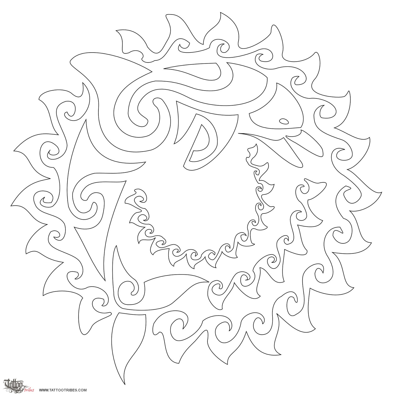 Luca asked for a Maori styled sun to express joy and happyness. Since Maoris consider dolphins to represent joy and harmony, being a symbol of protection too, we thought of getting the two designs together.