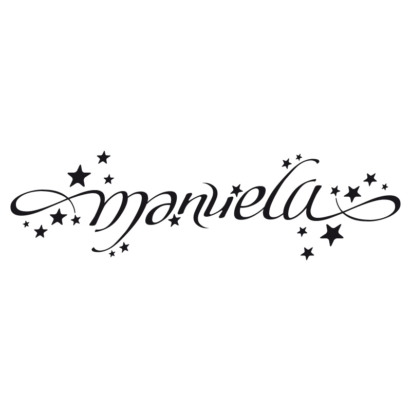 This ambigram, or homogram actually since the same word can be read even when it get rotated by 180 degrees, was requested by Manuela and it represents her name joined by a host of little stars.