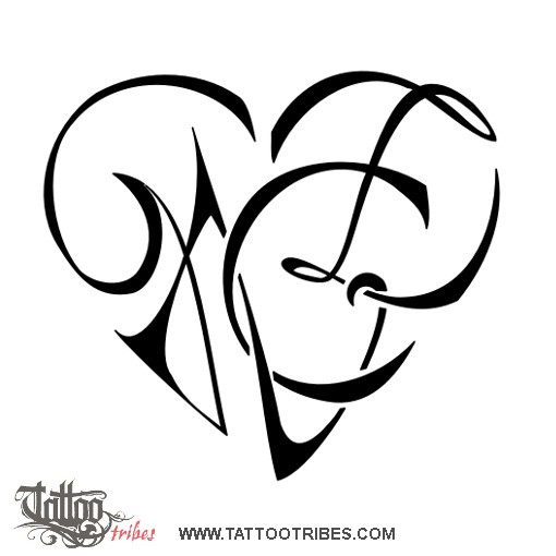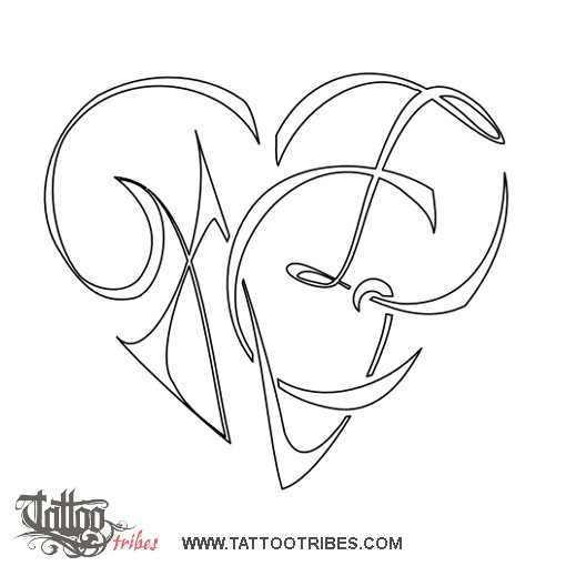Joining several letters in a way that graphically resembles a stylized heart we create what here on TattooTribes is called a heartigram. It symbolizes the love and union shared by the people whose letters are represented. In this heartigram requested by Cara the letters G+N+C+Z stand for the members of her family.