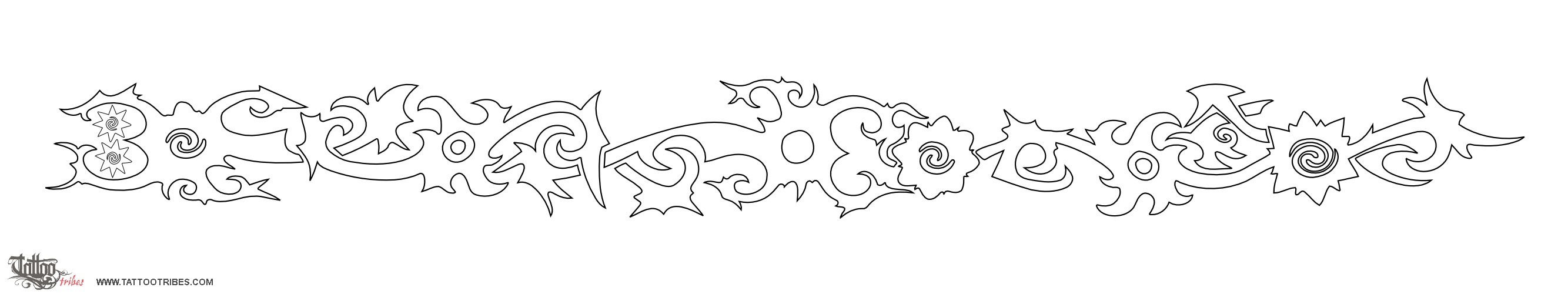This armband, designed to wrap around the arm in a spiral, incorporates some Borneo scorpions, stars and rosettes. It can also be easily splitted in simpler parts. In general, a great part of the designs used by men in Borneo tattooing is related to valiance or to hunting and fighting abilities, and often has a meaning of protection too.