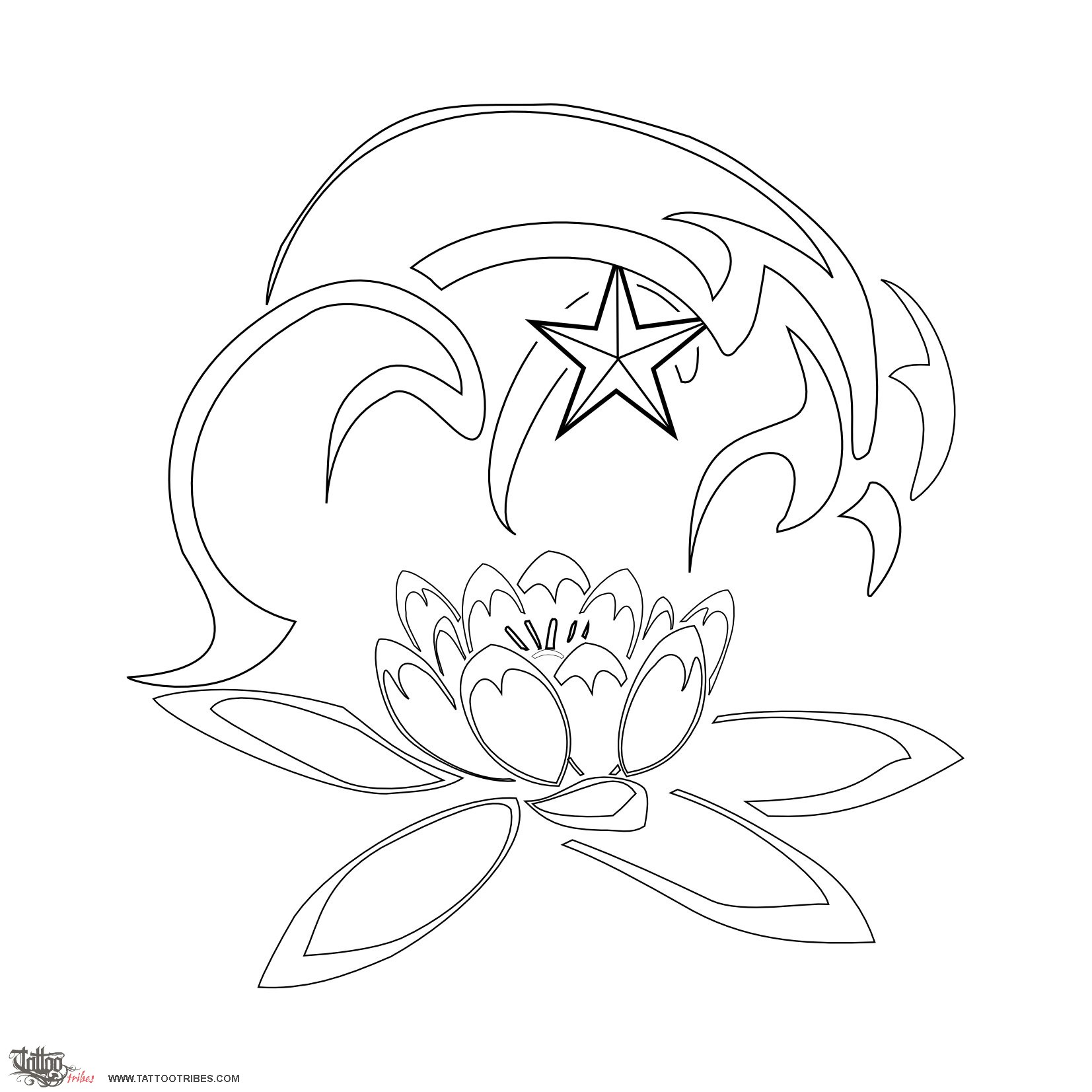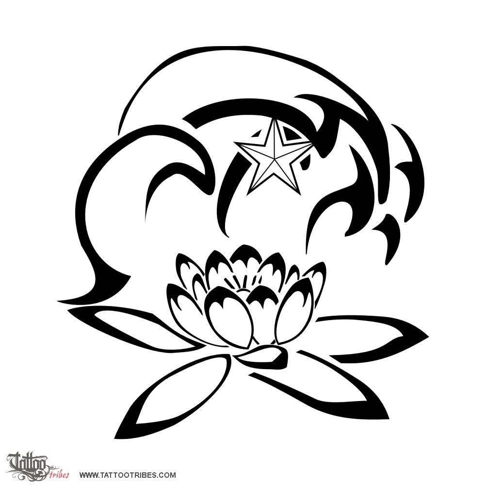 The waves sumbolize change, restlessness, whereas the star is stability, the fixed point to return to. The lotus flower symbolizes perfection, and overpassing obstacles.