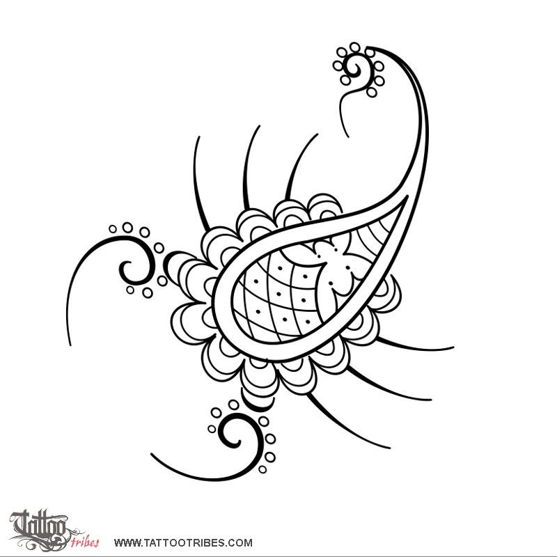 Chiara requested the tattoo of a Mehndi styled scorpion and we used as a base the peacock traditional motif, symbol of beauty and love, with the rain motif inside representing fertility and abundance.