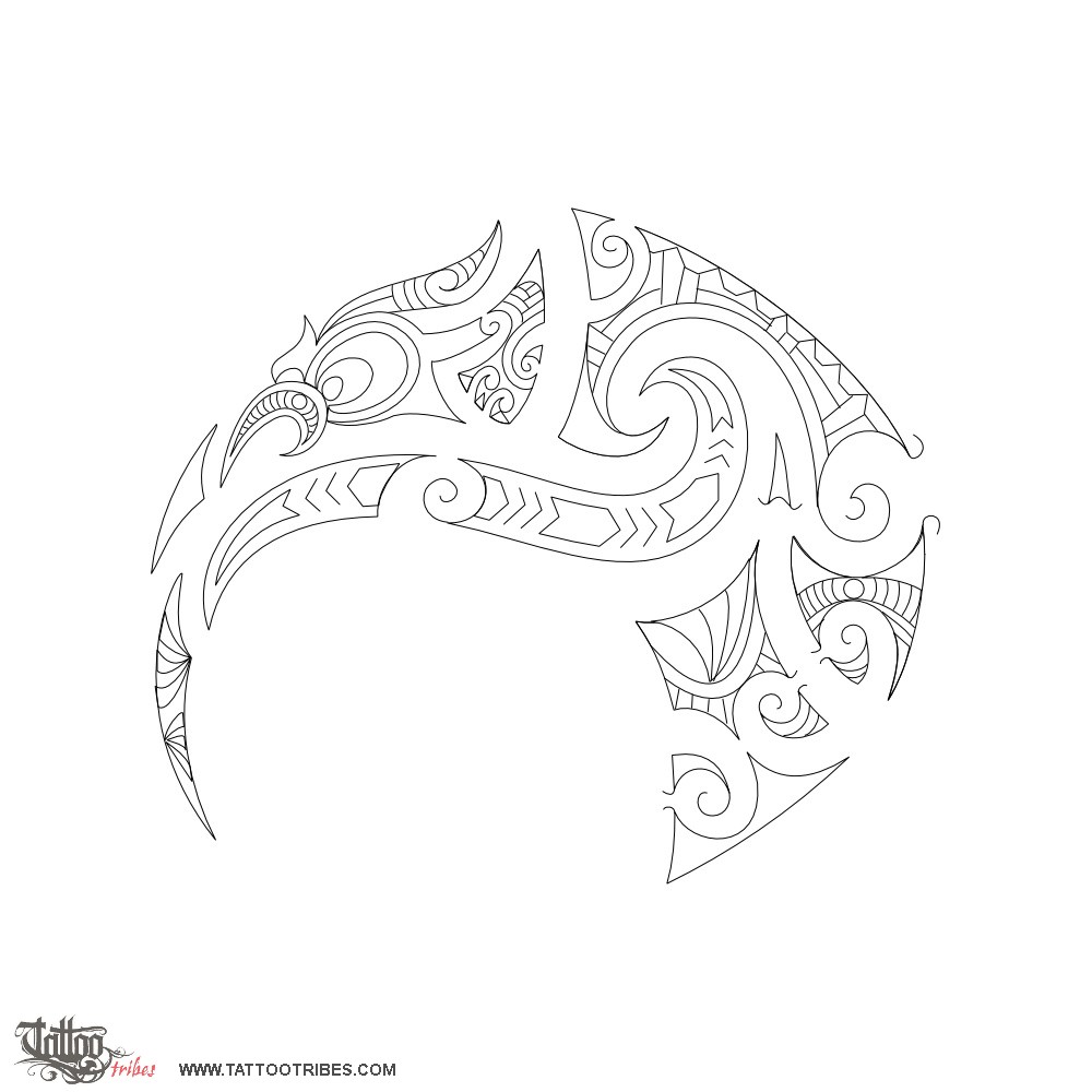 The rest of the design is the manta itself, with a double spiral representing him and his wife meeting, their union (a braid) which gave birth to their three children, represented by three koru.