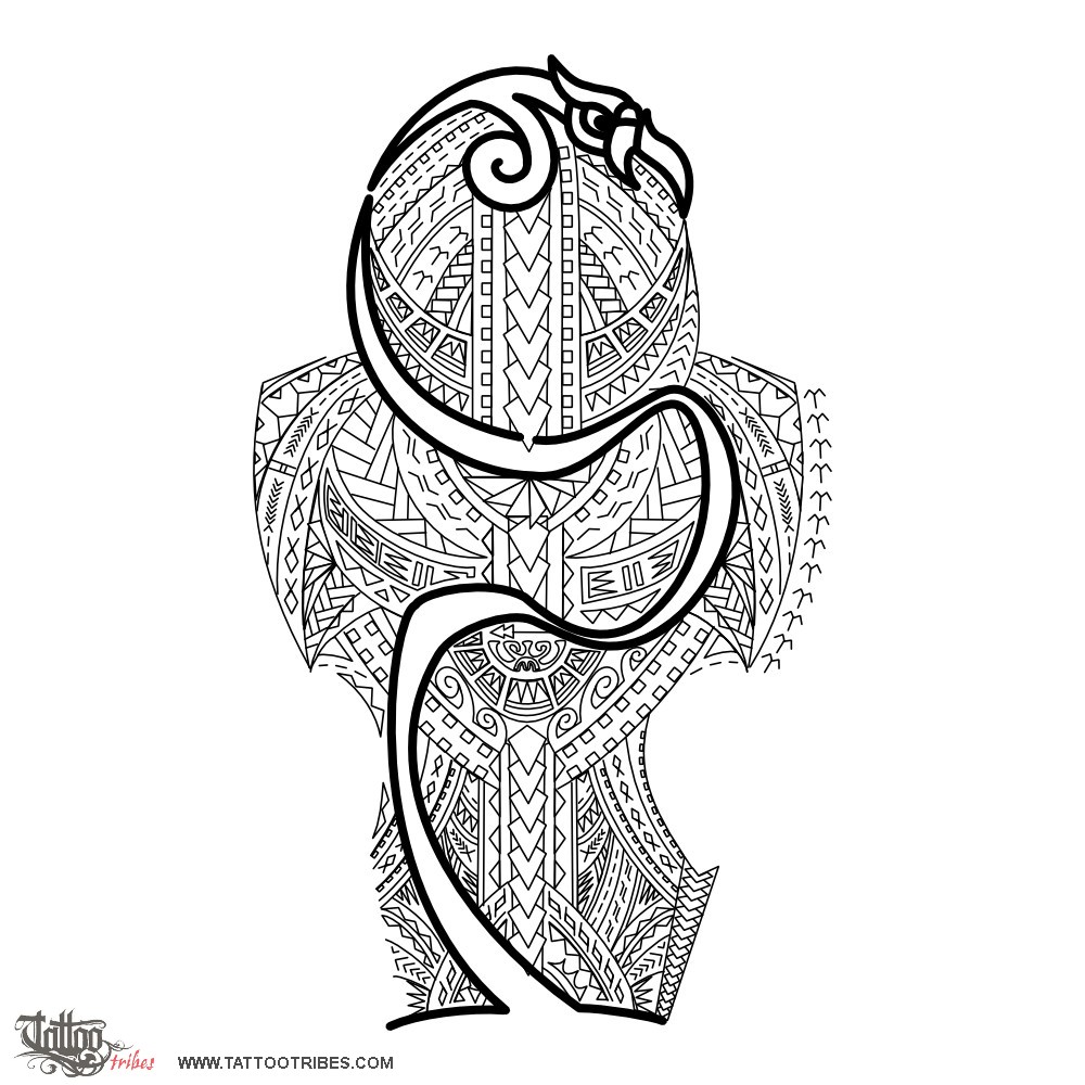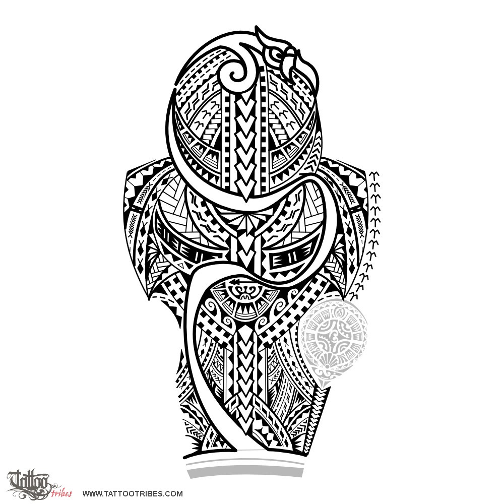 In addition to Samoan motifs, the manaia on top (guardian spirit, protecting it and developing in a stylized way all down the tattoo) was used to give more power to the design, enhancing at the same time the lines of the muscles.