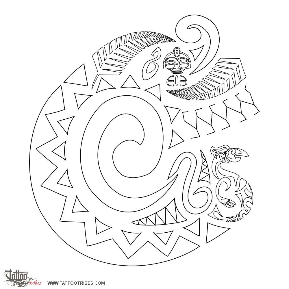 This tattoo, requested by Clemente, represents some important moments in his life, clockwise from the bottom: from the darkness, helped by the manaia, or guardian angel, to the sunlight, with the zodiac sign of the lion becoming a koru, symbol of new life; reaching maturity (adult fern), with love (the twist) and fertility (tiki) which, through the encounter with another person (the second fern), gave life to Arianna (which means "pure", as the light colour of her koru symbolizes). The turtle shell motif symbolizes the voyage of his life, which will in the end take him back where he started, passing from sunlight to darkness under the protection of his guardian angel.