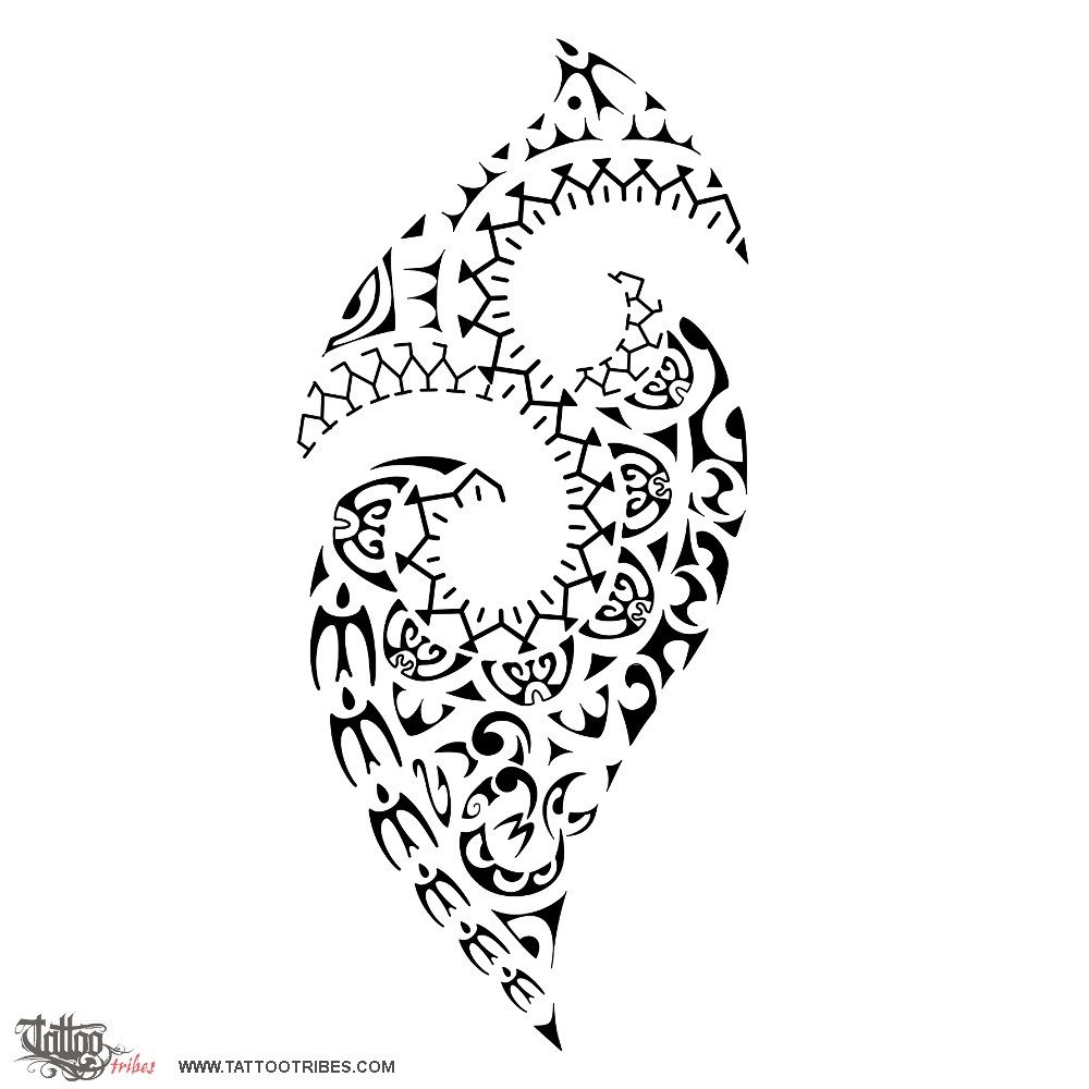 Polynesian tattoos explainedThis tattoo requested by Marcel presents two blank shapes: they are koru (unfolding fern leaves) which normally symbolize life and new beginning, also used coupled to represent descent and traditions.