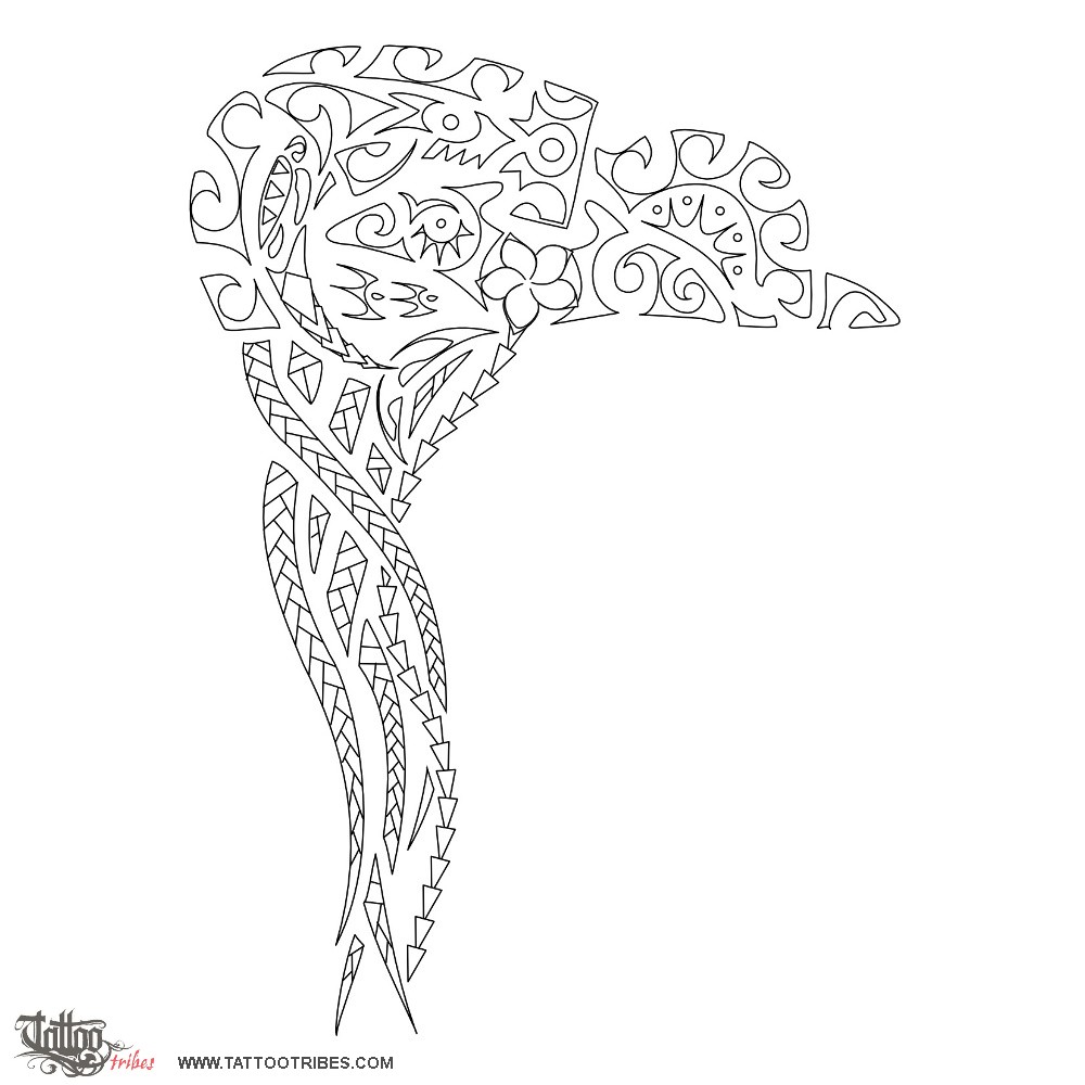 Polynesian tattoos explainedThe general shape of this tattoo requested by Jeff is a Portuguese man-o-war, with the body being shaped by the union of a hammerhead shark (his son) and a manta (his daughter).