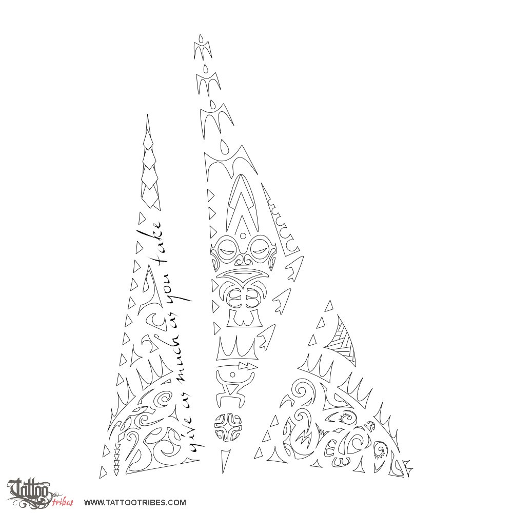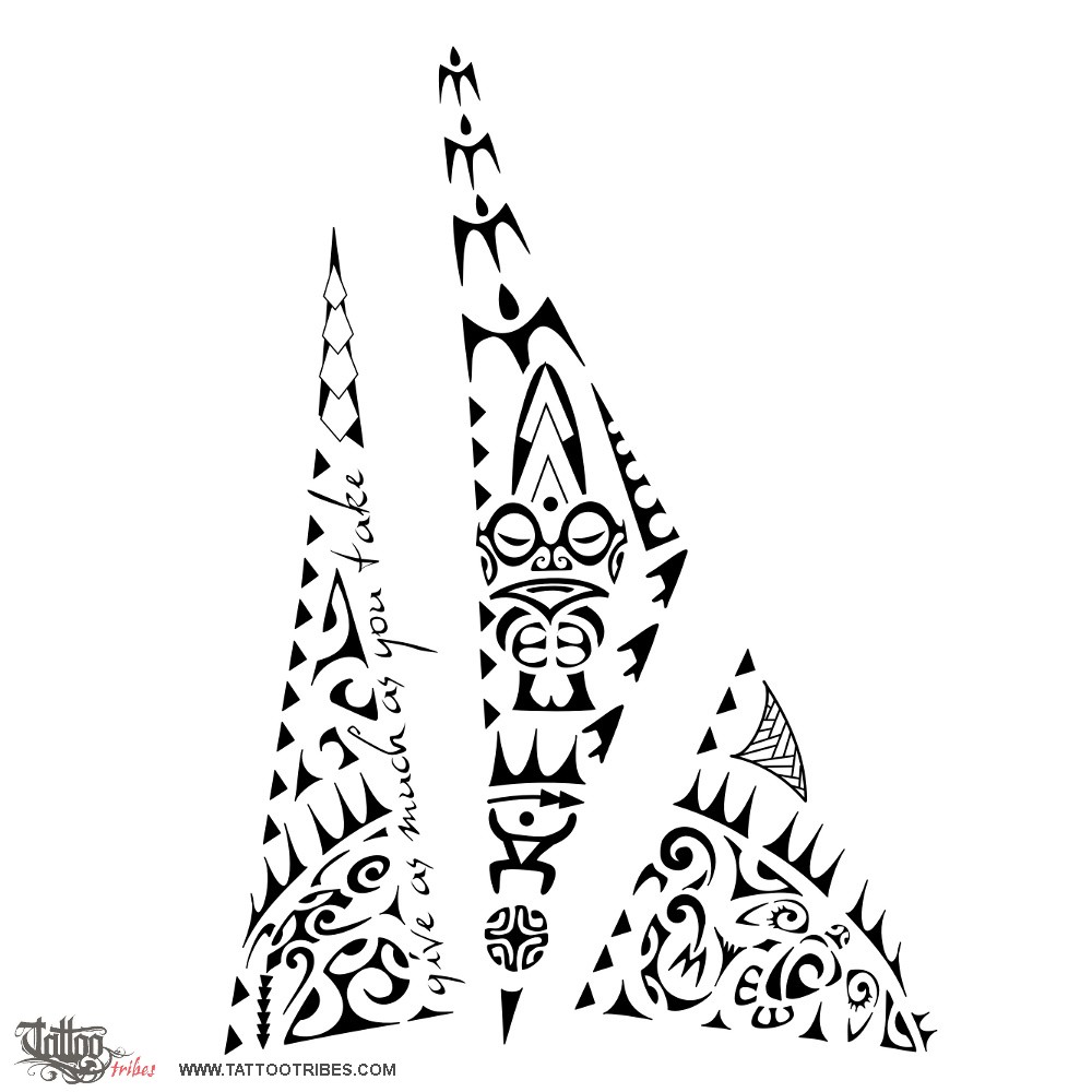 All the three spikes share the sun, which represents positivity and wants to symbolize here that joy exists when there is balance (the central Marquesan cross at the base) between all these elements and man (represented here by the Kena, the warrior that fights for this).