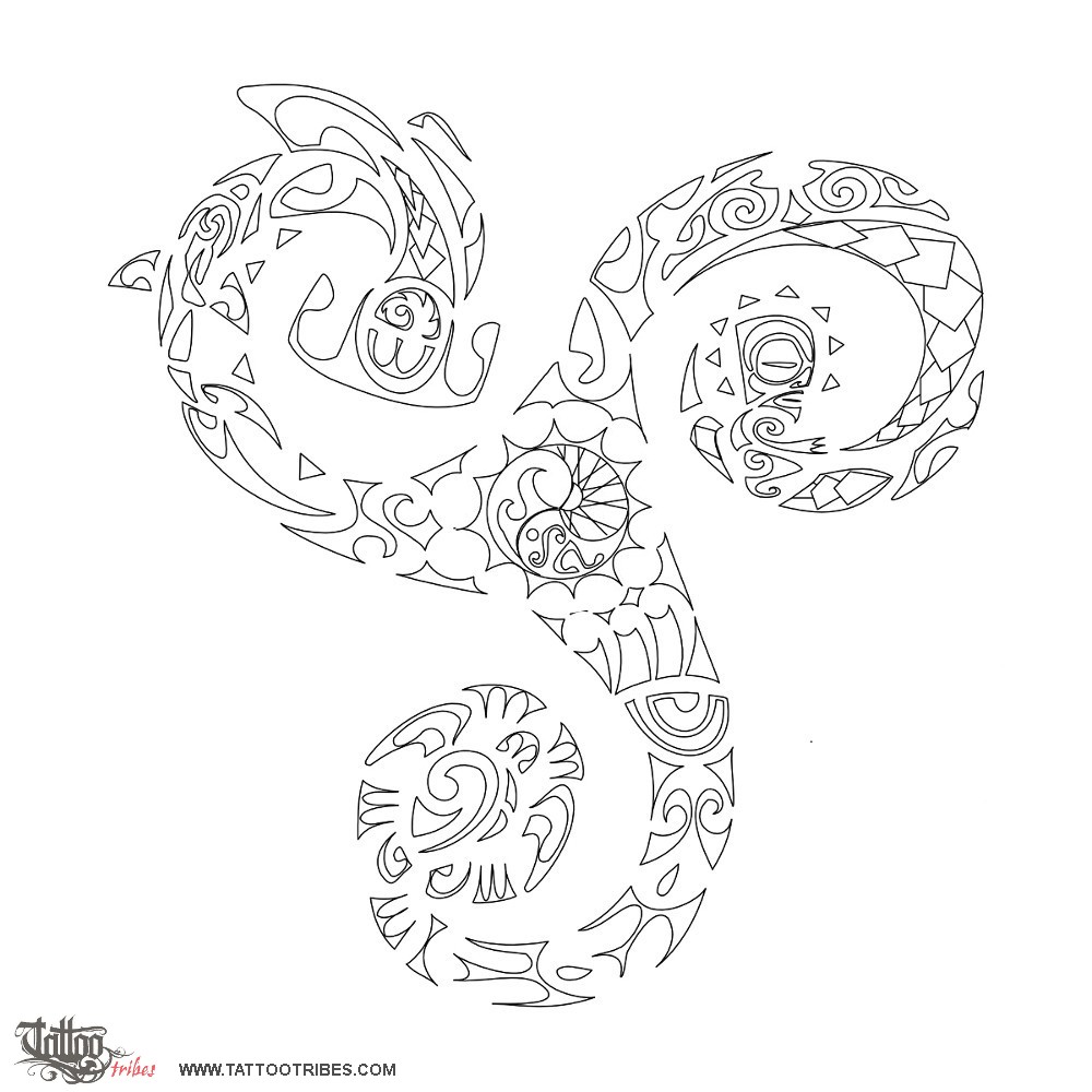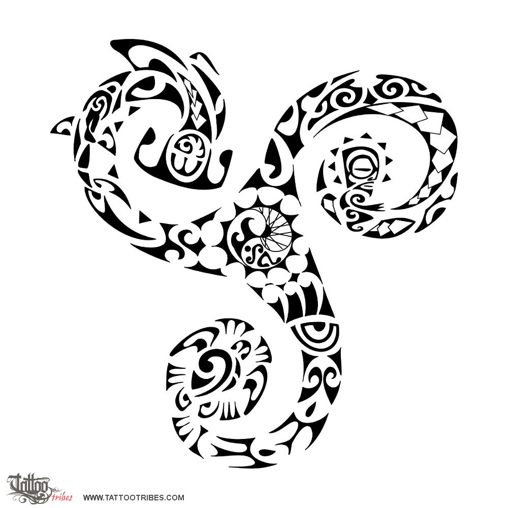 The triskell that shapes the tattoo is a symbol of eternity and union of the elements.